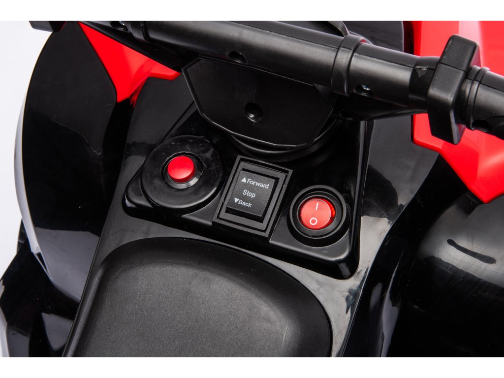Sport gyerek négykerekű Storm - ideális ajándék a vezetés legkisebb szerelmeseinek, akár születésnapra, akár egyéb alkalmakra. A gumi peremmel ellátott műanyag kerekeknek és az ökológiai bőrrel borított ülésnek köszönhetően az utazás nem csak kényelmes, de biztonságos is a kis vezetők számára.