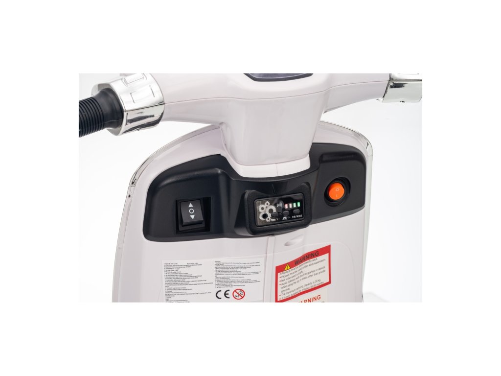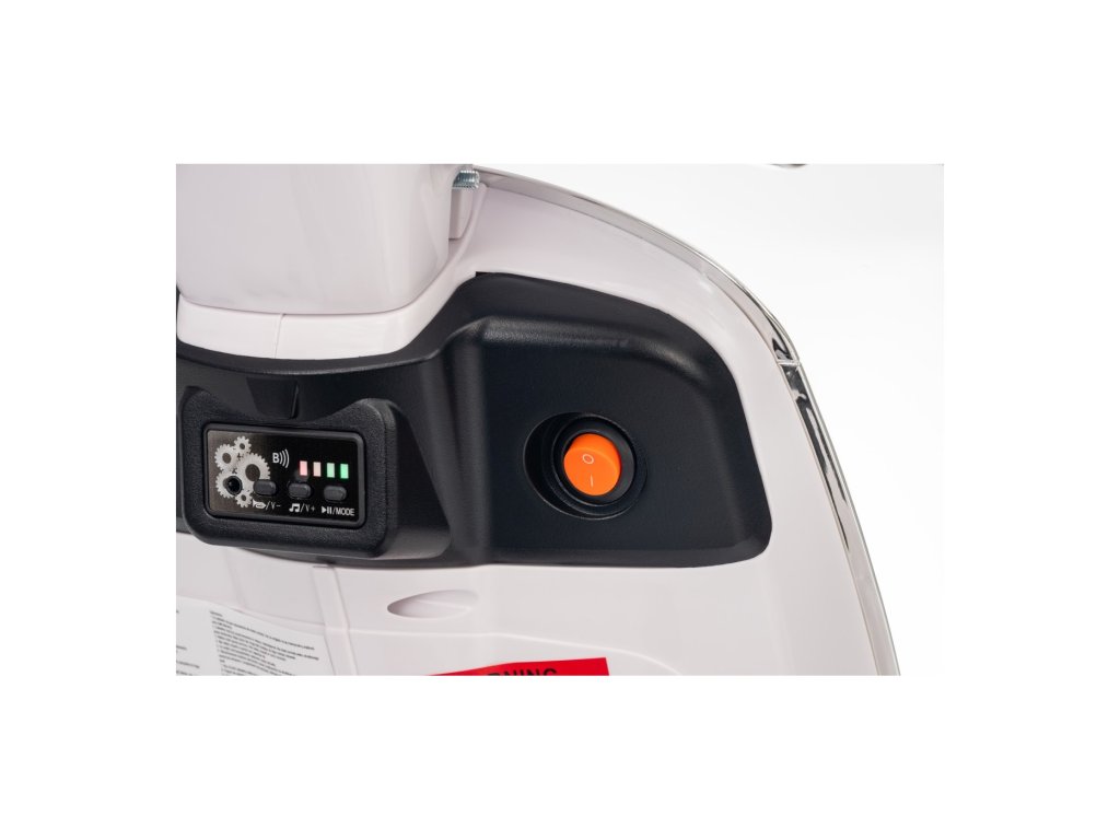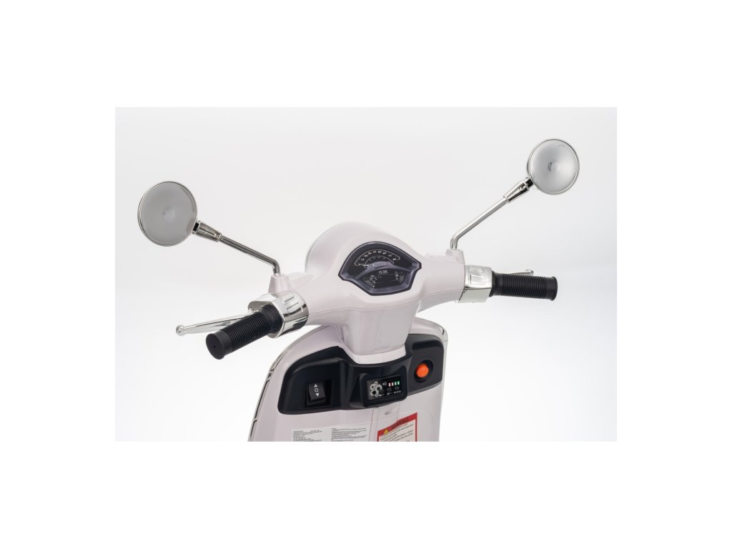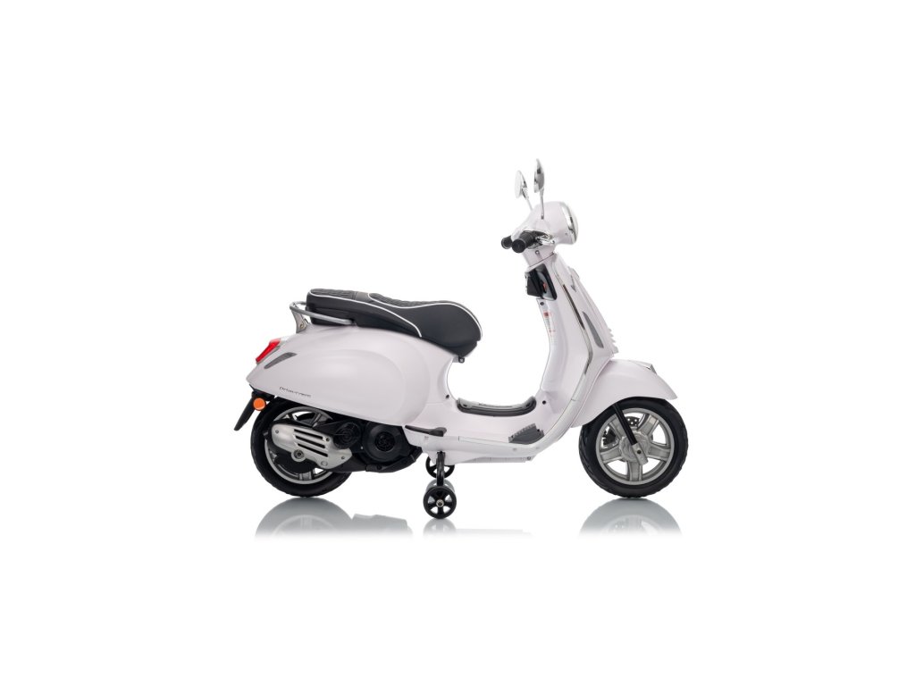 A Vespa 1 órán át tartó szenzációs utazást bír ki. A gyermek biztonságáról oldalsó kerekek és automatikus fék gondoskodik, amely megáll, amikor a gyermek leveszi a lábát a gázpedálról. A gyermek robogó 3 éves kortól alkalmas gyermekek számára.