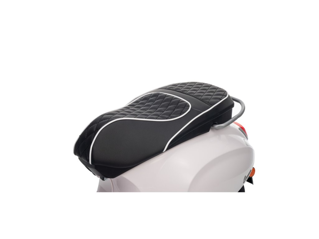 Ki ne ismerné a Vespa márkájú robogót? Ezt a legendás robogót gyermeke is vezethet, köszönhetően ennek a licencelt modellnek. A robogó minőségi, puha, ökológiai bőrrel bevont üléssel és puha EVA kerekekkel rendelkezik. Mindezek mellett gyönyörű első és hátsó LED lámpákkal rendelkezik, és képes MP3 fájlokat lejátszani, így gyermeke vezetés közben hallgathatja kedvenc dalát, és fejlesztheti vezetési képességeit.
