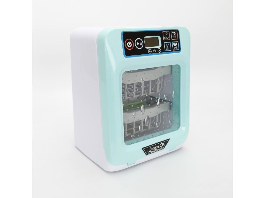 A stílusos, valósághű kialakítású gyermek mosogatógép gyönyörűen kiegészít minden gyermekkonyhát. Belül két kosár szint és vízcsepp effektusú átlátszó ajtók találhatók – minden úgy néz ki, mint egy igazi mosogatógép. Bekapcsoláskor fényeffektus gyullad fel, amely szimulálja a mosási folyamatot, így a gyerekek megfigyelhetik az edények „mosását“.