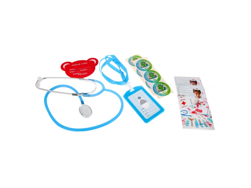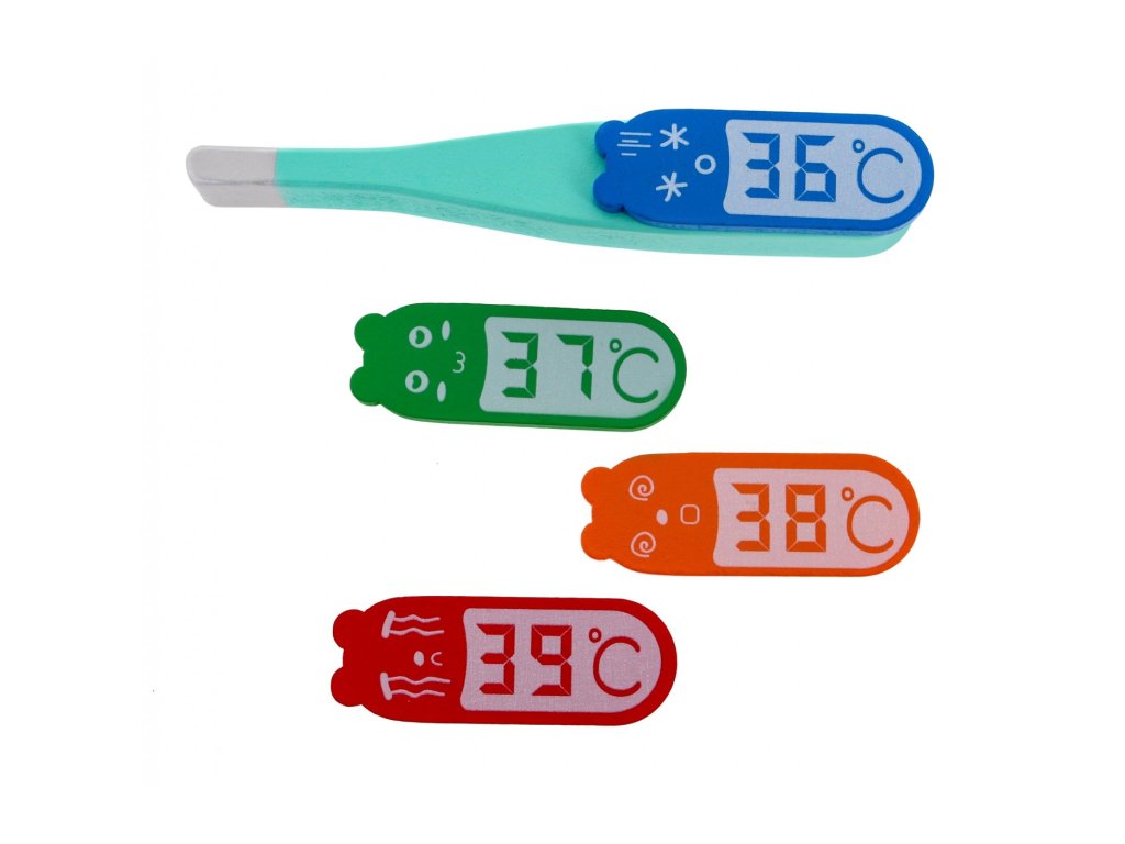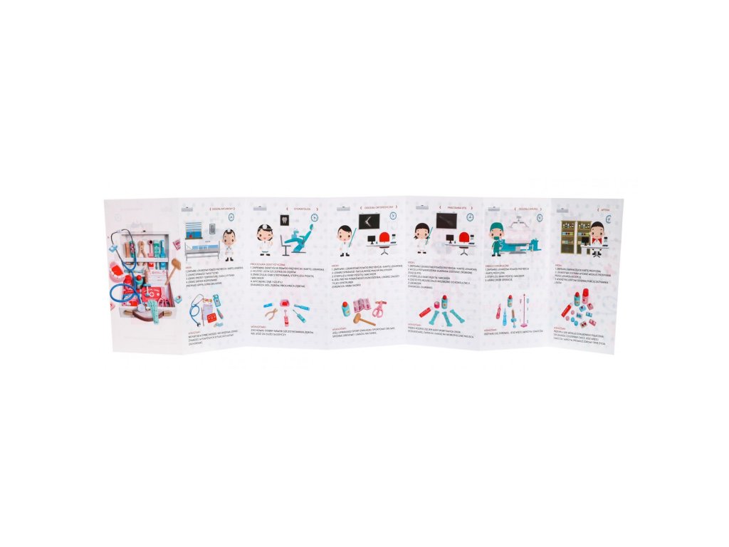 A fából készült gyermekorvosi készlet sok vészhelyzetben hasznosnak bizonyul. A jól felszerelt elsősegélynyújtó készlet hasznos mackók, babák és családtagok kezelésénél. A játék ezzel a készlettel sok szórakozást nyújt, és lehetővé teszi a gyermek számára, hogy leküzdje az orvoslátogatástól való félelmet. A színes orvosi kiegészítők fából készültek. Minden praktikus fogantyúval ellátott fa tokba van csomagolva.