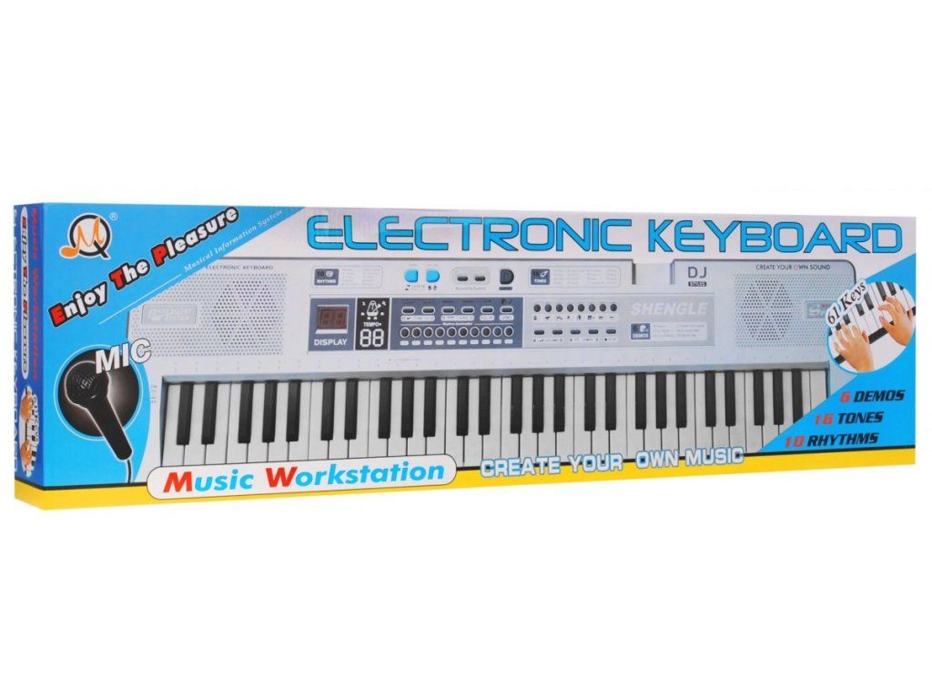 Fantastikus gyerek billentyűzet XXL fehér színben órákon át szórakoztat minden kis sztárt. A billentyűzet akár 61 billentyűt, előre rögzített hangszereket és különféle ritmusokat tartalmaz. A billentyűzet további legfőbb tulajdonsága a mikrofon és a 2 nagy teljesítményű hangszóró. A játék 5 éves kortól minden gyermek számára alkalmas.