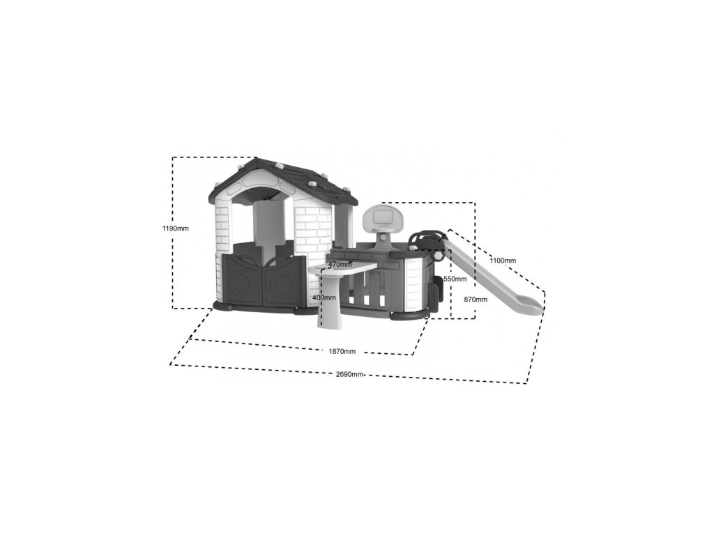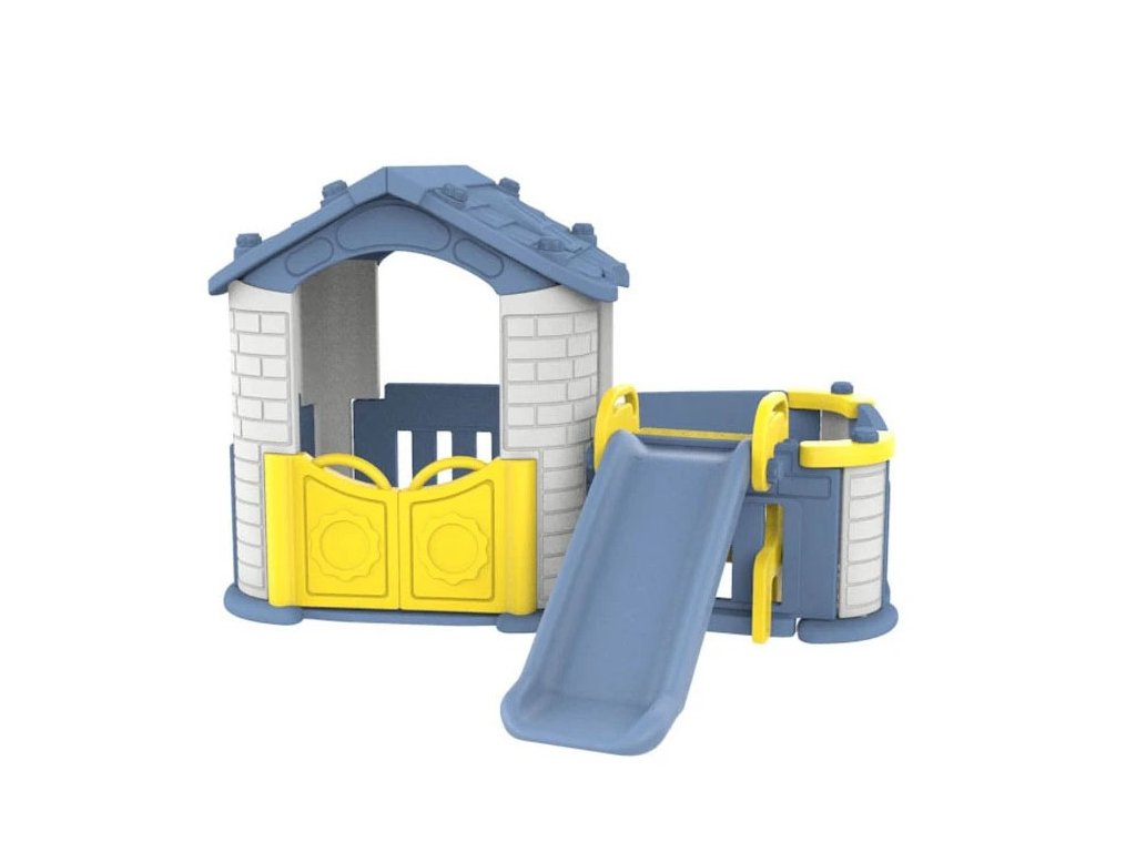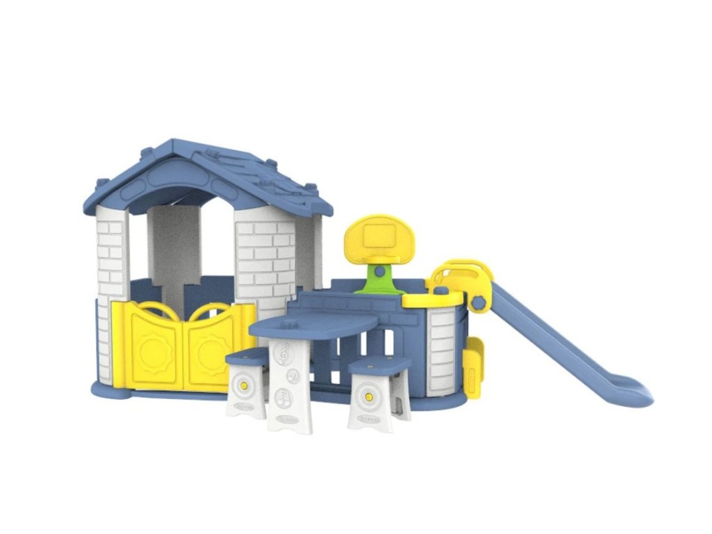 Gyerekkerti ház 5 az 1-ben csúszdával és kék tetővel