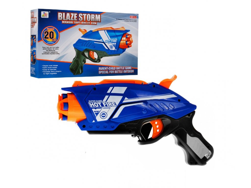 Gyors és pontos fegyver gyerekeknek , amely 10 hablövedékkel van megtöltve, ami senkinek sem árt. Puhák és tompák, így nincs sérülésveszély. A pisztoly akár 10 m távolságra is lő.A fegyver praktikus, könnyű és tartós. A ravasz alatt 4 golyós tár található. Ezzel a pisztollyal a gyerek nem fog unatkozni, szervezzen otthonában egy megfelelő lövöldözős játékot, az apukák biztosan csatlakoznak, és fiaikkal együtt térnek vissza gyermekkorukba. Többféle Blaze Storm pisztolyt kínálunk.