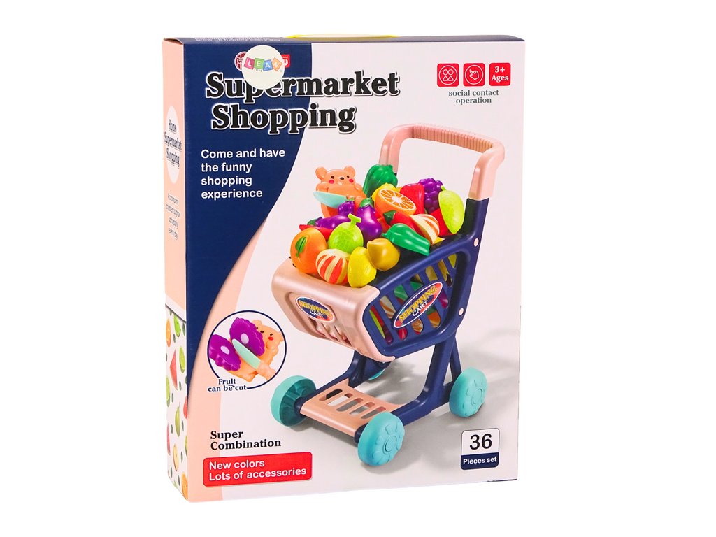 Gyerek bevásárlókocsi vágható élelmiszerekkel - sötétkék