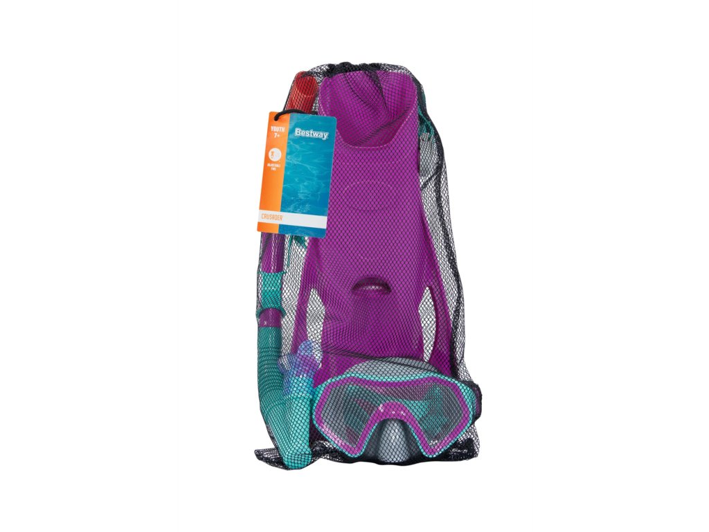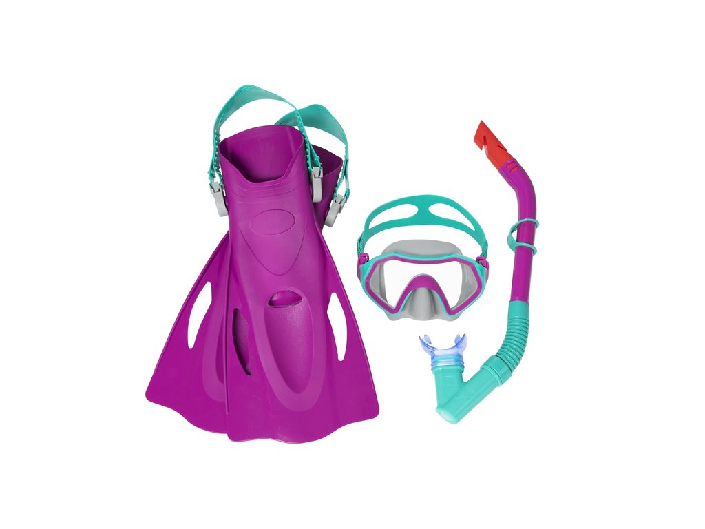 Gyermek búvárkészlet snorkel, szemüveg és uszony Bestway rózsaszín