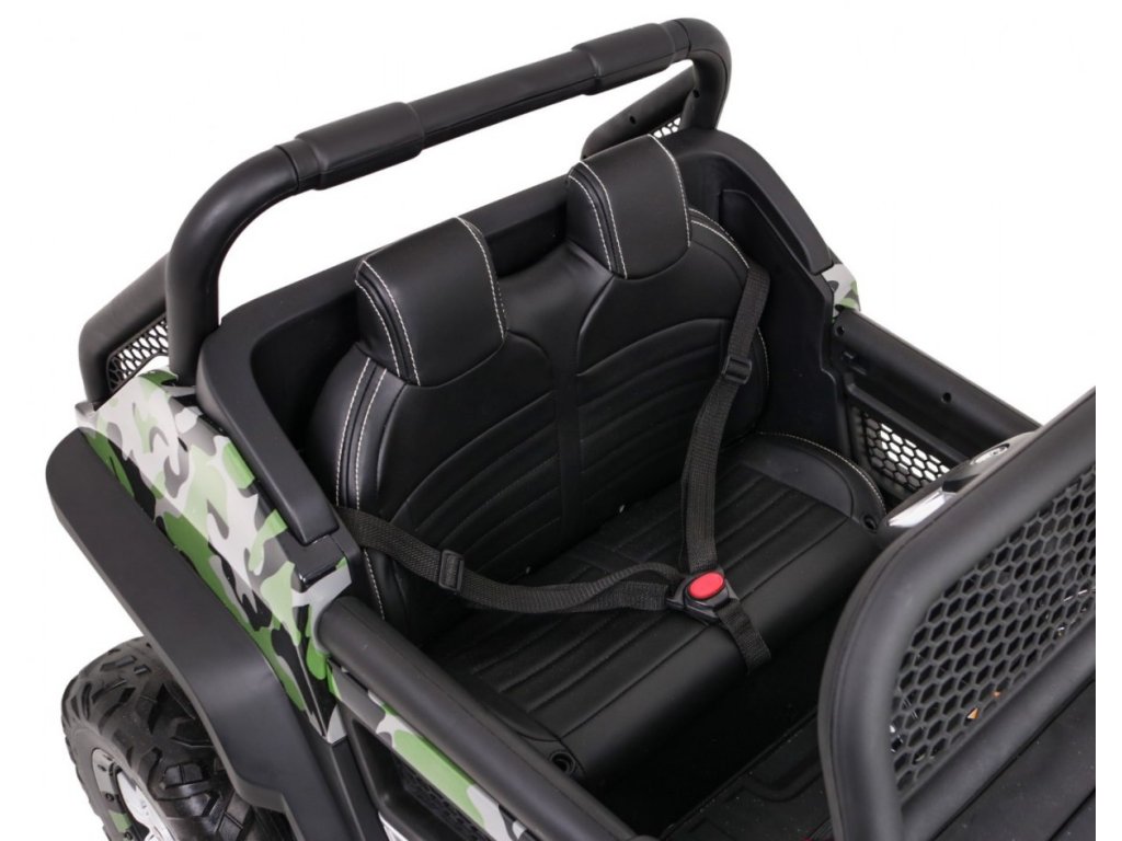 A gazdag felszereltséghez tartozik egy audio panel MP3 , SD , AUX és USB bemenettel. Hallgathatja kedvenc rádióállomását az FM rádiónak köszönhetően, vagy csatlakoztathatja a játékautót egy Bluetooth- eszközhöz. A gyermek kényelmes formájú, puha ökológiai bőrből készült ülésben ül. Első és hátsó LED lámpákkal világítja meg az utat.