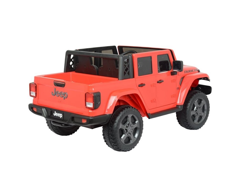A jármű belsejéből eltávolították a puha ökológiai bőrből készült fekete ülést, valamint az USB bemenettel, Bluetooth-al és előre felvett dallamokkal ellátott zenepanelt. A játékautó elöl és hátul LED lámpákkal rendelkezik. A Jeep Rubicon hátulján van egy csomagtartó, ahol apróbb cuccait tárolhatja.