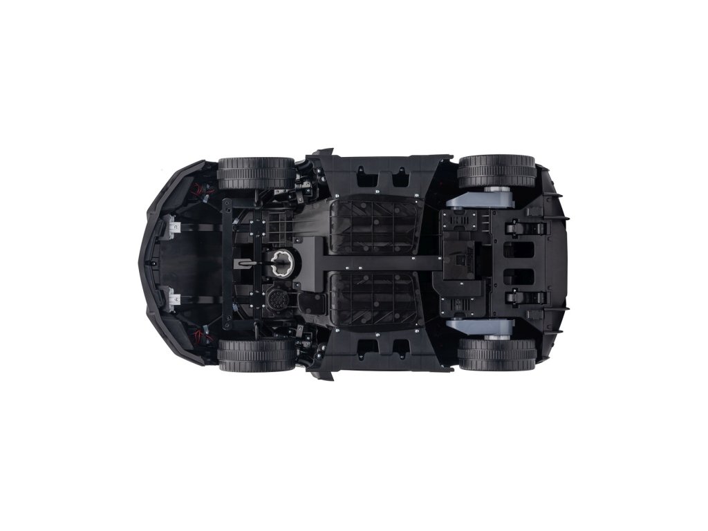 A fekete ülés puha eko-bőrből készült, ami jelentősen növeli a vezetési kényelmet, míg a forgókormány mérete és súlya több éves gyermekek kezébe illeszkedik, biztosítva a könnyű manőverezést és az akadályok elkerülését. A műszerfalon található egy zenei panel USB-porttal, AUX-porttal és Bluetooth-szal. Az elektromos autó használata nagyon intuitív és egyszerű - mindössze annyit kell tennie, hogy bekapcsolja a gombot, majd lenyomja a gázpedált és óvatosan vezessen. Használhatja a második megoldást is - a készlet tartalmaz egy megbízható 2,4 GHz-es távirányítót, amellyel az autót irányíthatja.