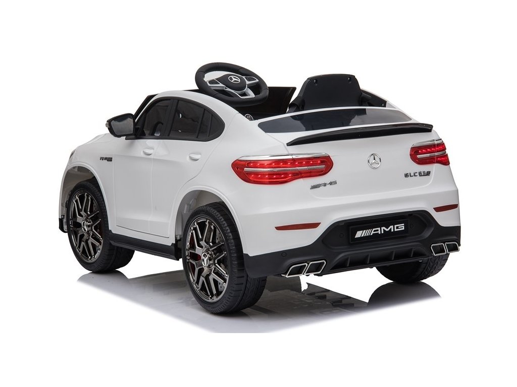 Gyermek elektromos autó Mercedes-Benz GLC 63S erőteljes villanymotorral 4x45W és zselés akkumulátorral 12V 7Ah. A jármű minden gyermek számára alkalmas 30 kg teherbírásig .