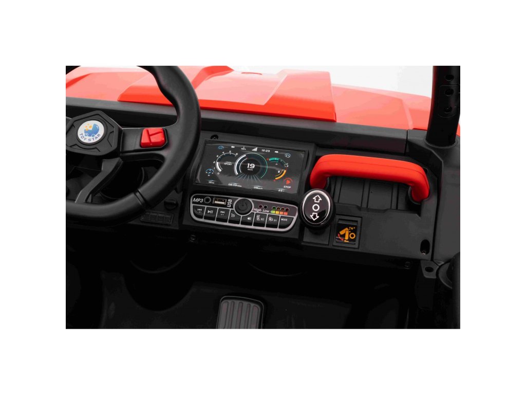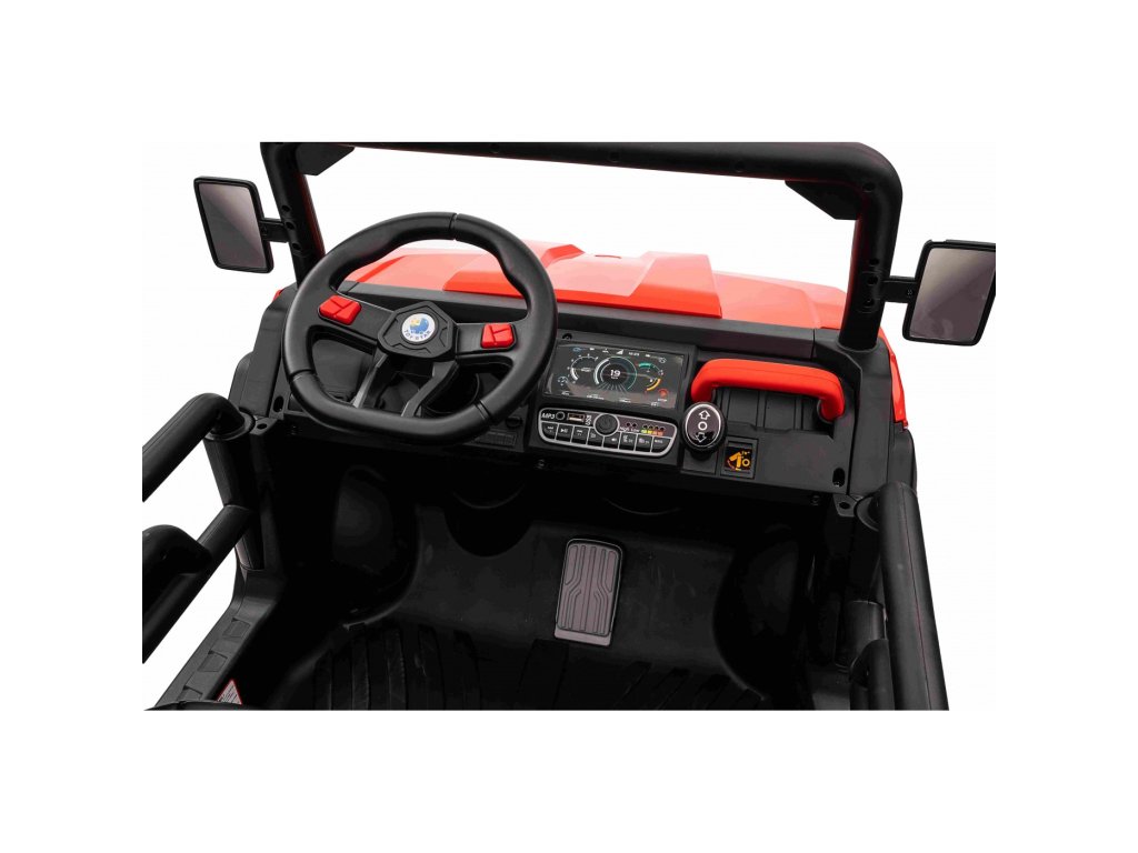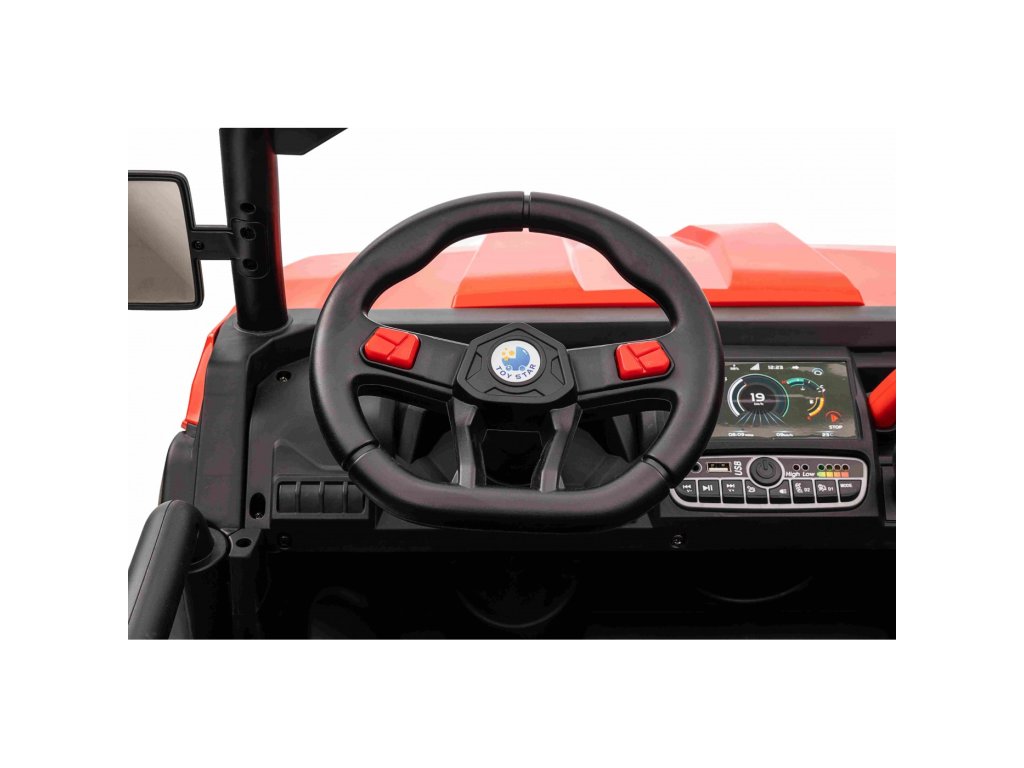 A 2,4 GHz-es távirányító minden irányban haladó gombokkal, valamint egy STOP biztonsági gombbal van felszerelve, amely azonnal leállítja a járművet és kikapcsolja annak összes funkcióját.