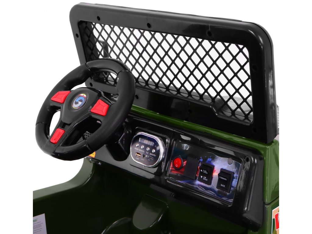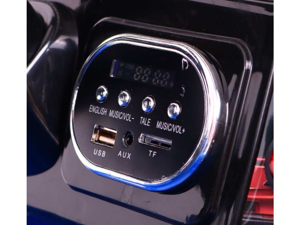 Hangpanel: MP3, SD kártya bemenet, AUX bemenet, USB bemenet, rögzített dallamok, kormánygombok dallamokkal és kürt
