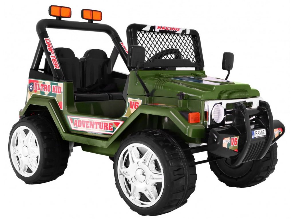 Gyermek Raptor Drifter elektromos autó innovatív távirányítóval, szülők számára. A játékautó nagyon kényelmes üléssel rendelkezik, az ülésen pedig biztonsági öv van elhelyezve a gyermek biztonsága érdekében. A játékautó műszerfallal, kormánnyal és izzó fényszórókkal is fel van szerelve. A babakocsi kétféleképpen vezérelhető, vagy a szülőknek szánt távirányítóval, ahol a szülő választja meg a menet irányát és sebességét, vagy a gyermek teljesen önállóan vezeti a játékot . A kerekek puha habból készültek, és zörgés nélkül sima és kellemes vezetést tesznek lehetővé.