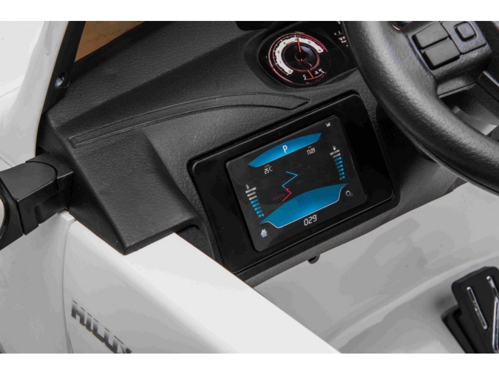 A játékautó gazdag felszereltsége tartalmaz egy zenepanelt memóriakártya, USB, AUX és MP3 bemenettel. Az FM rádiónak köszönhetően kedvenc állomását is hallgathatja, vagy Bluetooth-on keresztül csatlakoztathatja a készüléket.