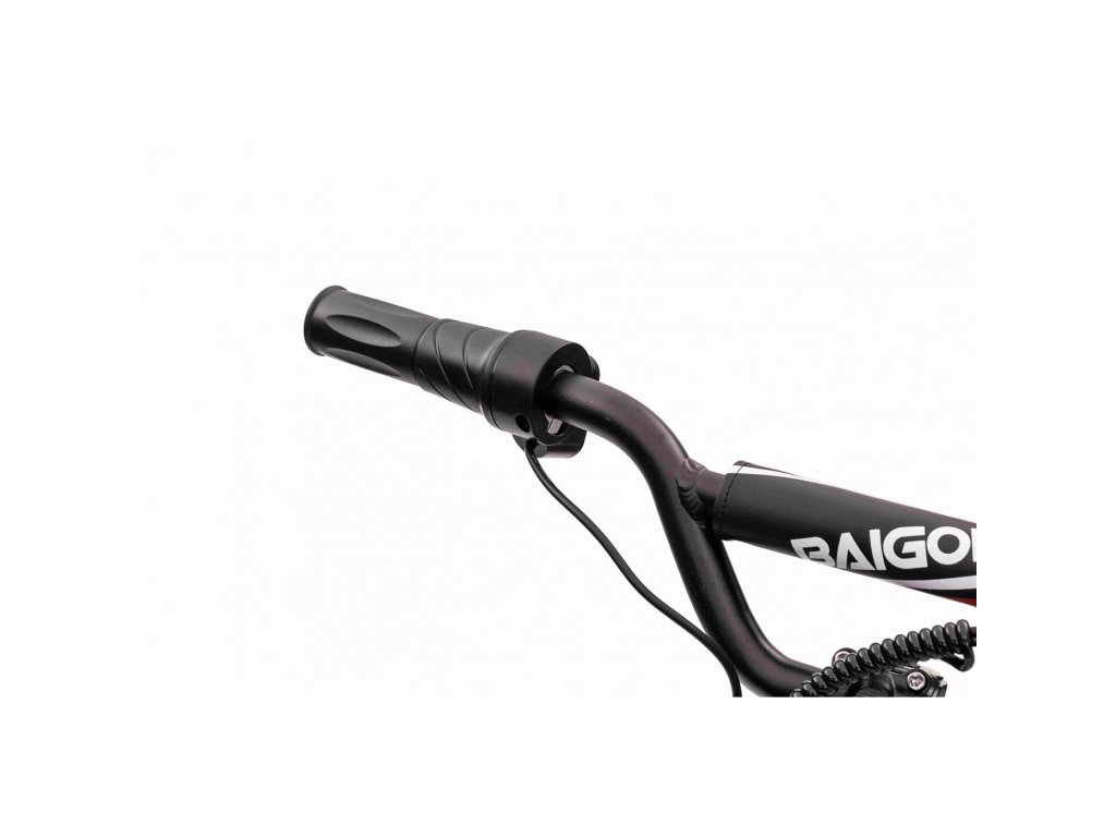 A BAIGOR 23 PRO gyermek elektromos motorkerékpár/kerékpár felfújható kerekekkel rendelkezik, amelyek csendesek és nem zavarják a vezetést. A gyermek kényelmesen kialakított, öko bőrből készült ülésben ül, teherbírása 60 kg . A BAIGOR 23 PRO hátsó tárcsafékkel, lánchajtással rendelkezik, és akár 25 km/h sebességet is elérhet. A csomag tartalmaz egy akkumulátort és egy töltőt.