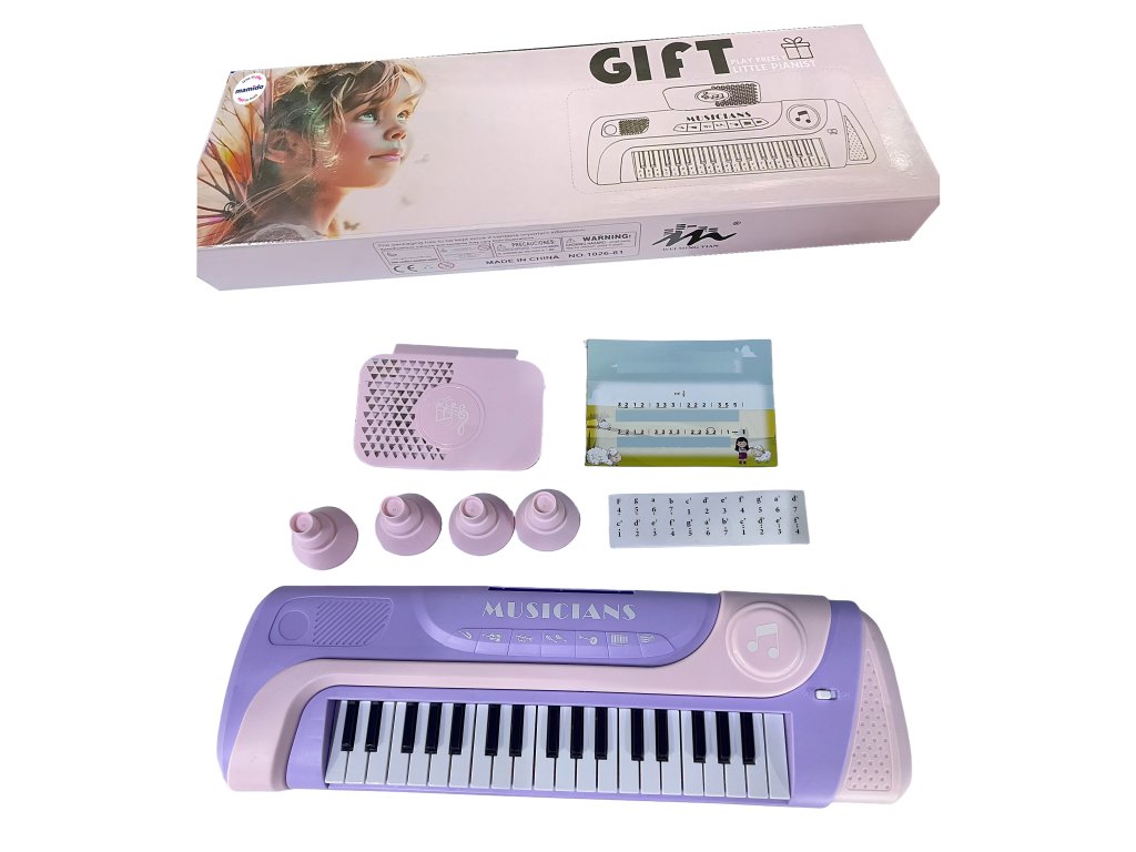 Fedezze fel a zene világát ezzel a 37 billentyűs gyermek elektronikus zongorával, amelyet kifejezetten a kis zenészek számára terveztek. A vonzó rózsaszín-lila dizájnú zongora különféle zenei módokat, demó dalokat és saját hangok lejátszásának lehetőségét kínálja. A csomag tartalmaz egy kis sámlit és egy kottaállványt is, így a gyerekek igazi zongoristáknak érezhetik magukat. Ez a billentyűzet támogatja a zenei kreativitást, fejleszti a ritmusérzéket és órákig tartó szórakozást nyújt.