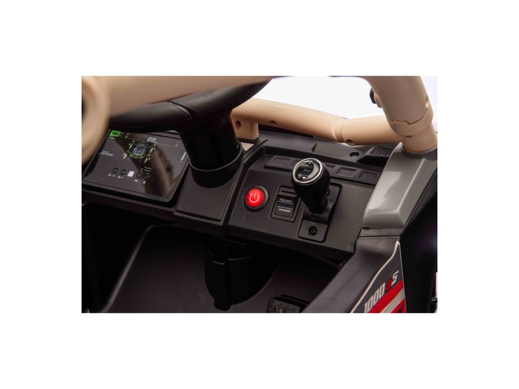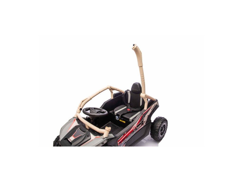 Stílusos Buggy Kawasaki TERYX KRX1000 gyerek kisautó ideális választás kis sofőrök számára, akik imádnak terepen és sima felületen is száguldozni. A nagy teljesítményű 24V-os rendszer négy motorral (2× 20W elöl, 2× 45W hátul) elegendő erőt biztosít még az egyenetlen terepen is. A kisautó puha EVA kerekekkel, kényelmes bőr üléssel és biztonsági övekkel van felszerelve. A STOP funkcióval ellátott távirányítónak köszönhetően a szülők mindig kézben tarthatják a járművet. A felszereltség tartalmaz LED lámpákat, audio panelt Bluetooth-szal, MP3, USB bemenettel és további funkciókkal.