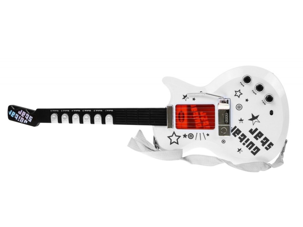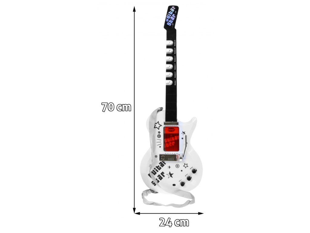 - Gitár állítható pánttal (három 1,5 V-os AA elemmel működik - nem tartozék)