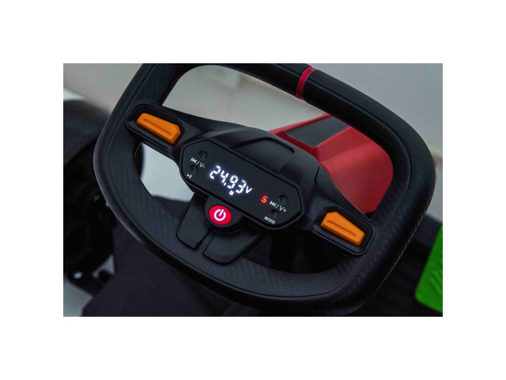 Egy 24V-os 10Ah-s akkumulátorral és két erős 150W-os motorral szerelt elektromos gyerek gokart sem hiányozhat egyetlen gyerekgarázsból sem. A gokart hátsó LED-világítással, valamint FM-rádióval és Bluetooth-os zenepanellel rendelkezik.