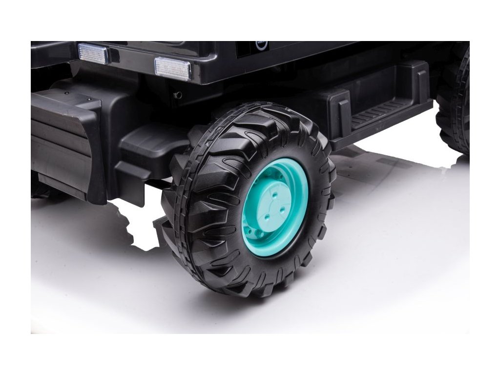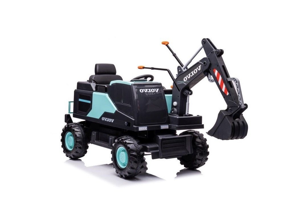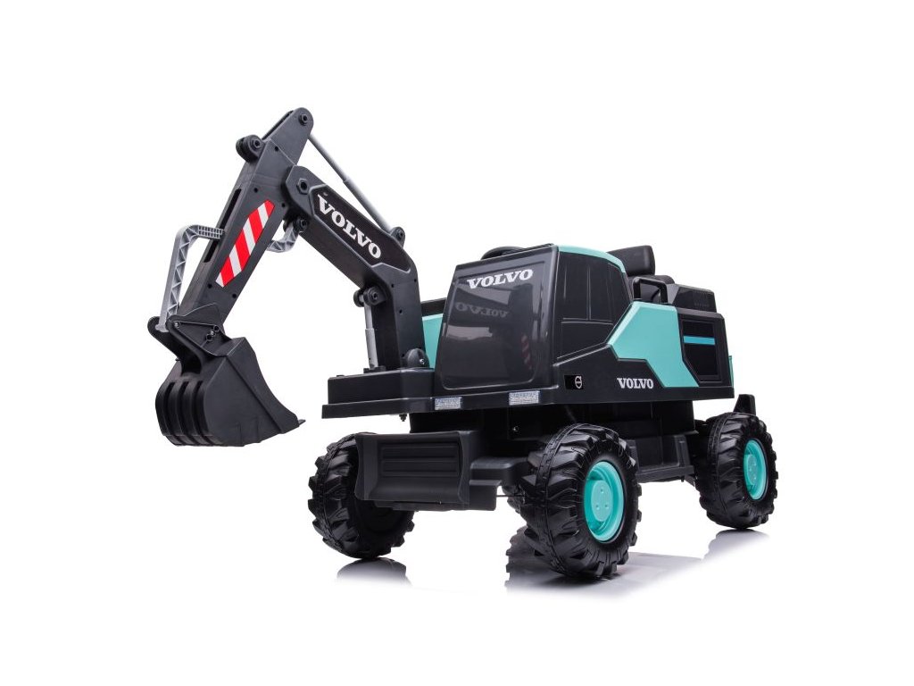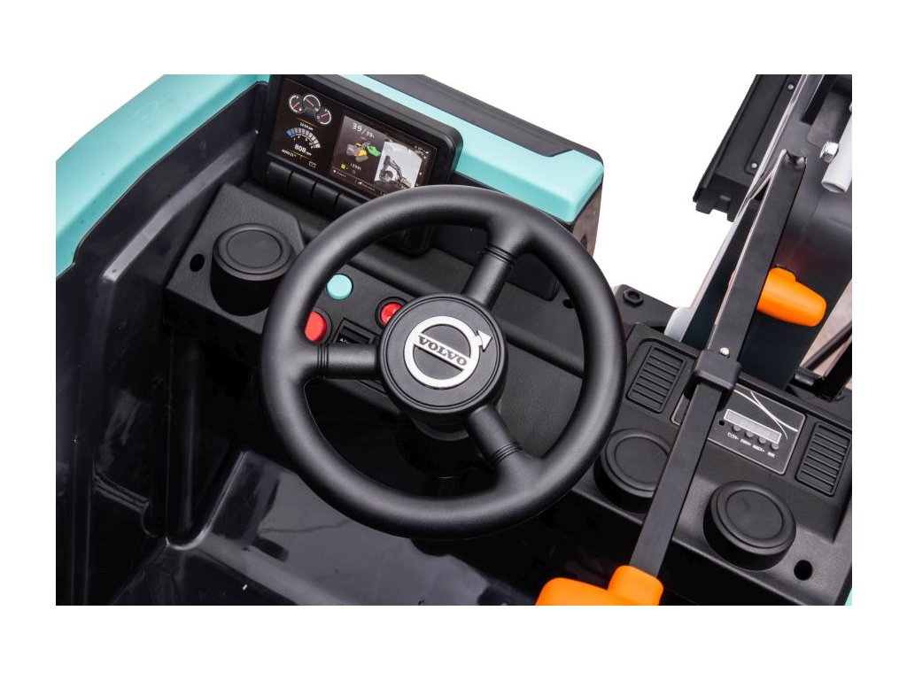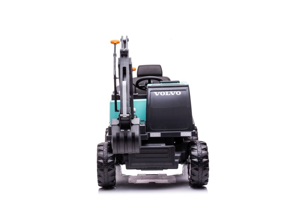 A Volvo gyermek elektromos kotrógép EVA kerekeken van, amelyek csendesek és nem zavarják a vezetést. A gyermek kényelmes, biztonsági övvel ellátott ökoBőrülésben ül, az utazást pedig biztosan kellemesebbé teszi az MP3 rádióból vagy a babakocsi hangszórójával csatlakoztatott mobiltelefonról hallgatható zene.