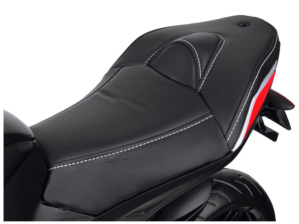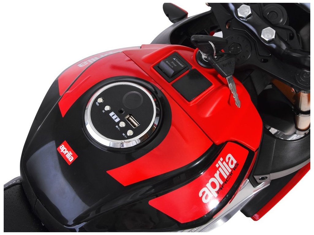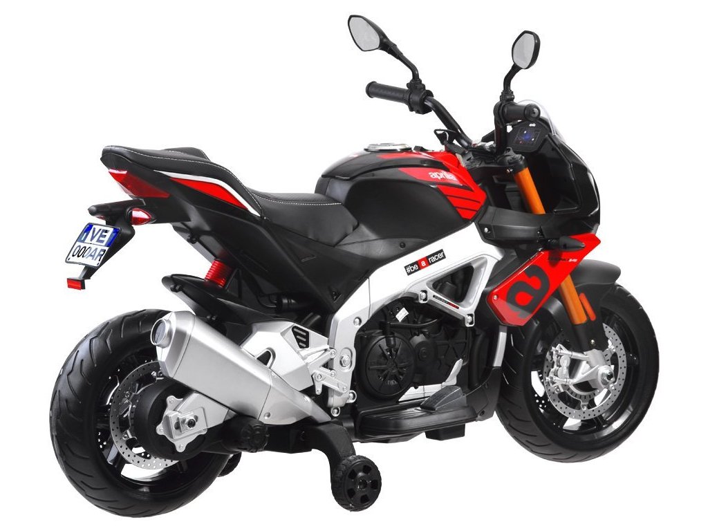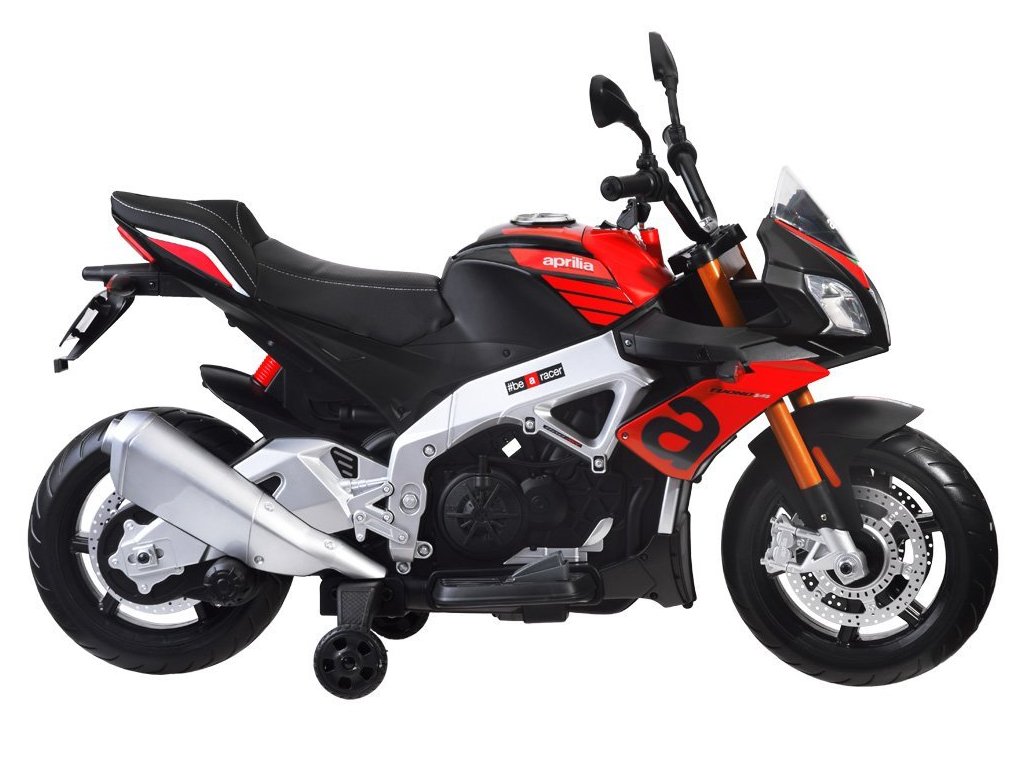 Az Aprilia Tuono V4 gyerek elektromos motorkerékpár két erős villanymotorral, EVA hab kerekekkel és puha ökológiai bőrből készült üléssel rendelkezik, amelyek együttesen biztosítják a kényelmes utazást.