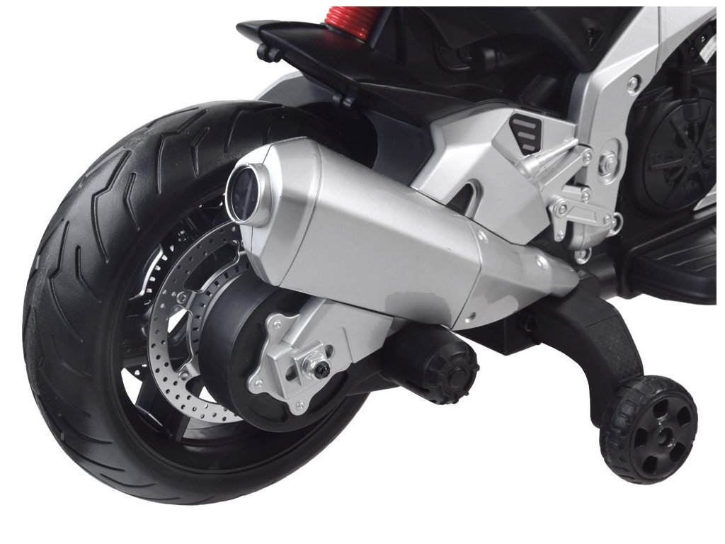A jármű indításakor hallani fogja a motor hangjait, a hangeffektusok és fényeffektusok pedig minden bizonnyal kellemesebbé teszik az utazást. A motorkerékpár levehető oldalsó kerekekkel és oldalsó tükrökkel rendelkezik.
