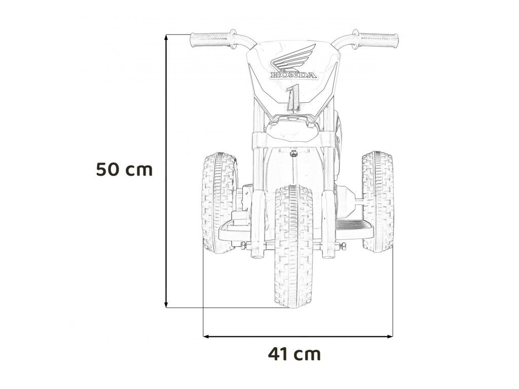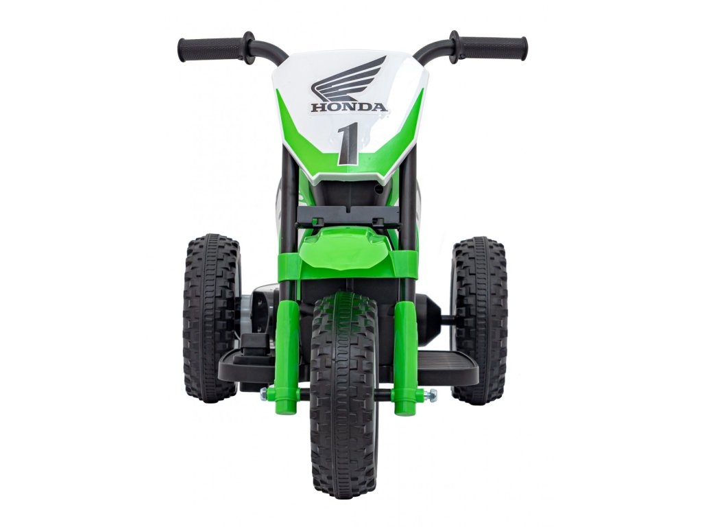A Honda jogosítvánnyal rendelkező elektromos gyerekmotorkerékpár gumikerekekkel és hangeffektusokkal érkezik. A motorkerékpár maximális teherbírása 25 kg.