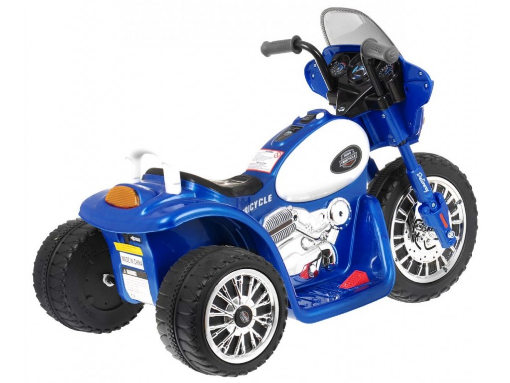 Rendőr motorkerékpár , mely kemény műanyagból készült , minőségi anyagokból és jól megmunkált . A gyermek elektromos motorkerékpár két irányban haladhat előre és hátra. A tartályon lévő kapcsoló és a lépcsőn lévő lábpedál vezérli. A motorkerékpár lefékezi magát, ha leveszi a lábát a pedálról. A motorkerékpár világít, és olyan hangeffektusokkal is rendelkezik, mint a kürt, a motorhang és az indítás. A gyerekek imádni fognak rendőrt játszani ezzel a gyerekmotorral .