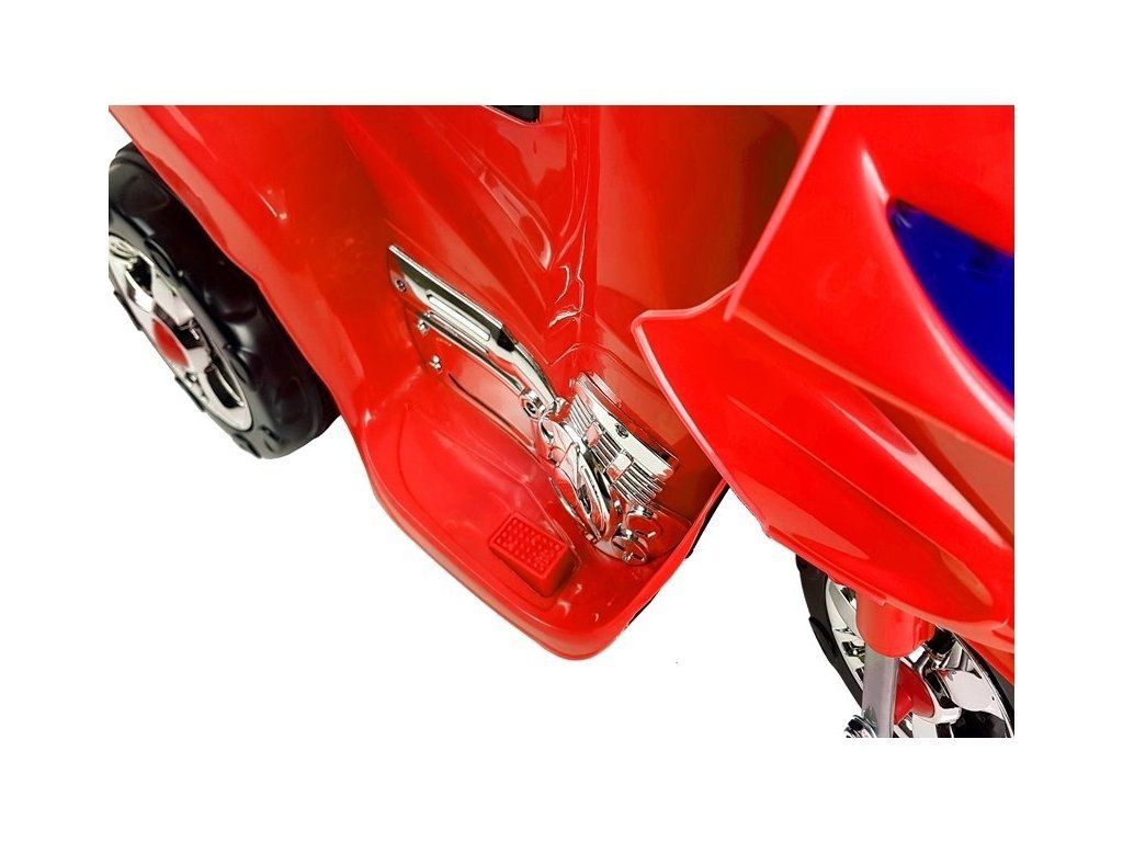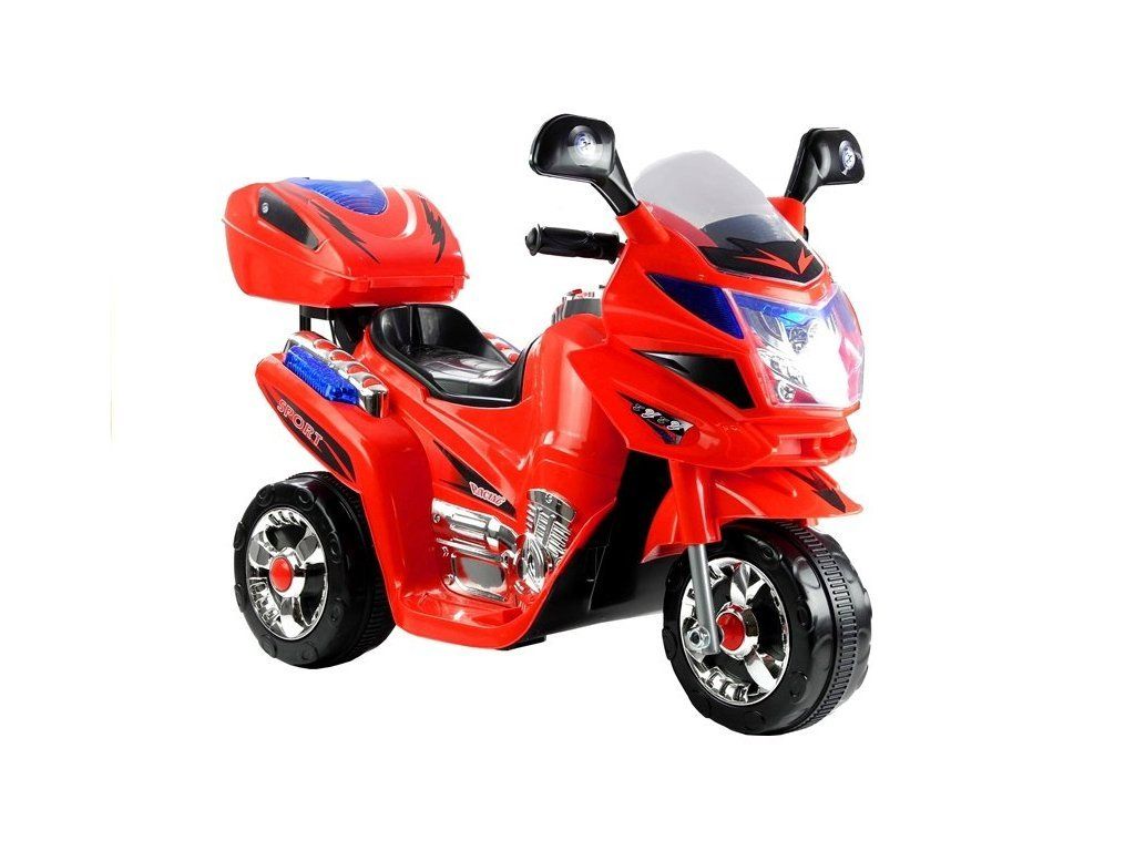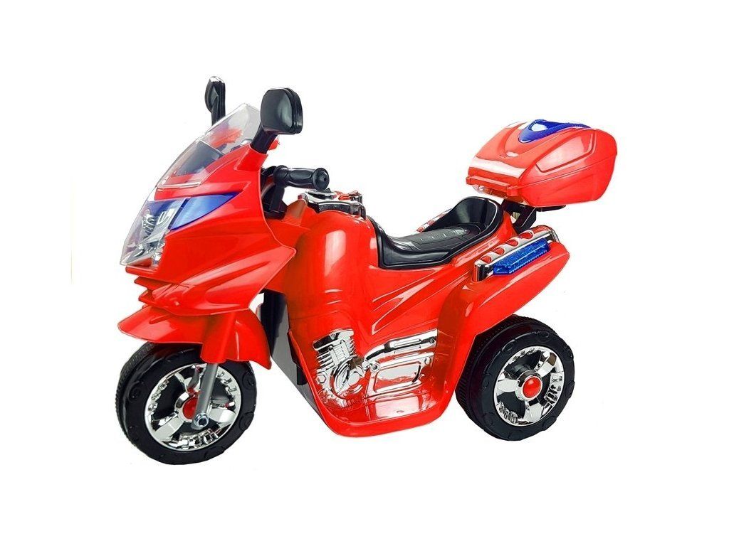 A piros elektromos motorkerékpár 6V4,5Ah-s akkumulátorral és erős 18W-os motorral van felszerelve, ezeknek az alkatrészeknek a duója körülbelül 4 km/h sebesség elérését teszi lehetővé, ami minden gyermek számára remek szórakozást nyújt. Sőt: ennek a modellnek két fokozata van – előre és hátra, ami sokkal könnyebbé teszi a szórakozást. További elemek, amelyek ennek a motorkerékpárnak a fő előnyei: átlátszó motorháztető, oldalsó tükrök és LED világítás, amelyek növelik a gyermek láthatóságát az úton. Hátul egy nyíló csomagtartó található, amelyben a kis sofőr tárolhatja kincseit. Fontos elem a kürt és a zene gombok a kormánykerék területén.