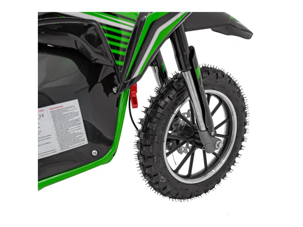 A gyerek elektromos motorkerékpár durva mintázatú felfújható kerekekkel és 500W-os motorral rendelkezik. Jellemzők az első és a hátsó tárcsafékek és a puha, vízálló ülés .