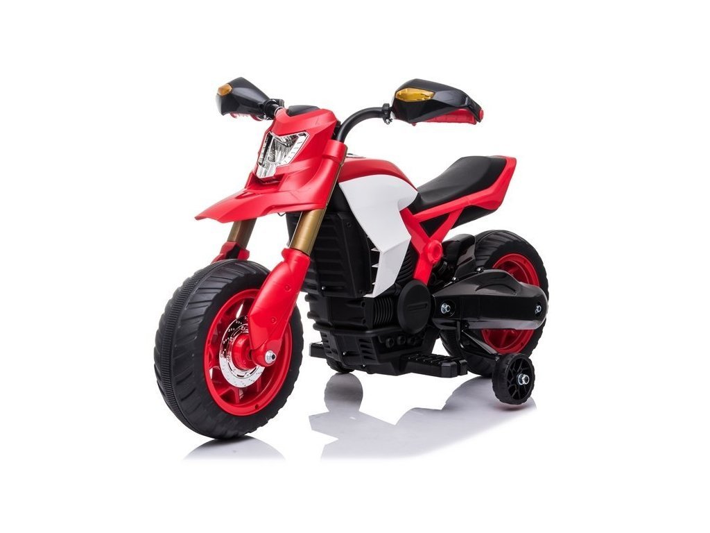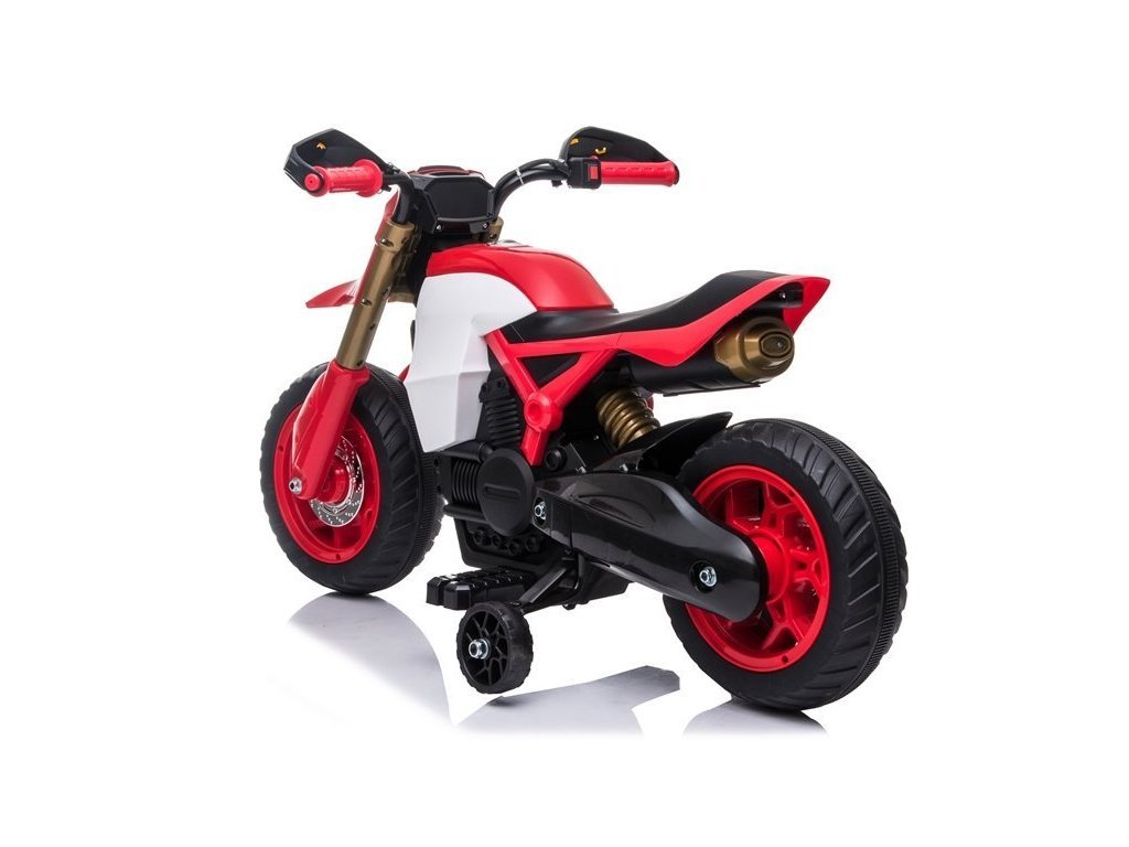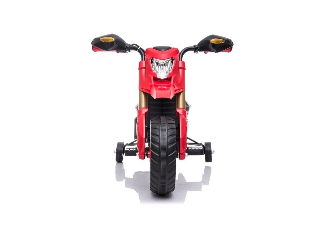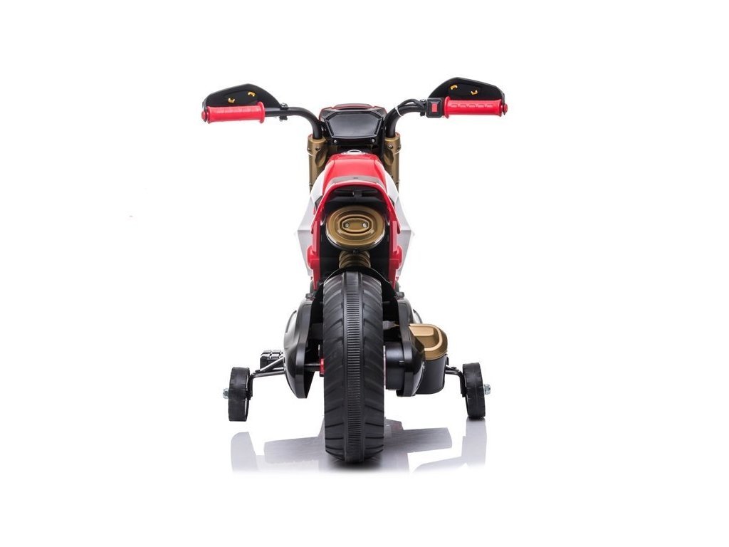Gyermek elektromos motorkerékpár Sport minden fiúnak és lánynak. Az erős 45 W-os villanymotorral szerelt elektromos motorkerékpár 2,5-3 km/h sebességgel halad. A motorkerékpár fényeffektusokkal rendelkezik - első LED lámpák.