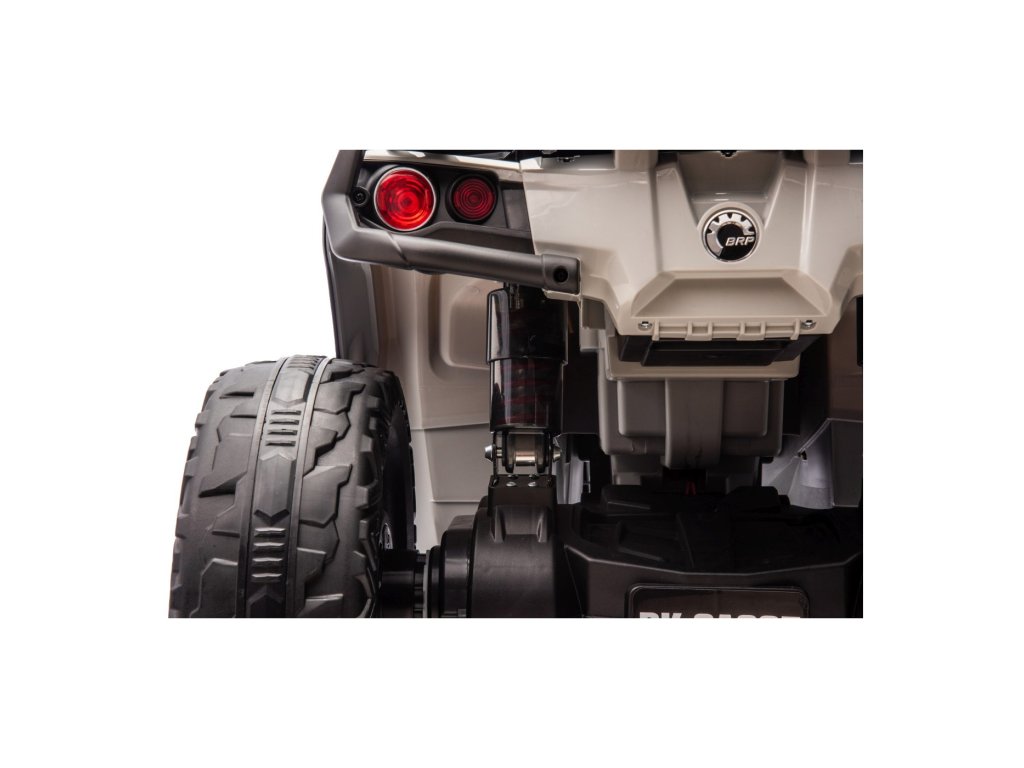 A gyermek elektromos quad négy, összesen 180 W teljesítményű motorral és széles EVA hab kerekekkel van felszerelve. A quad könnyedén megbirkózik a különféle terepviszonyokkal, burkolatlan felületekkel és dombokkal.