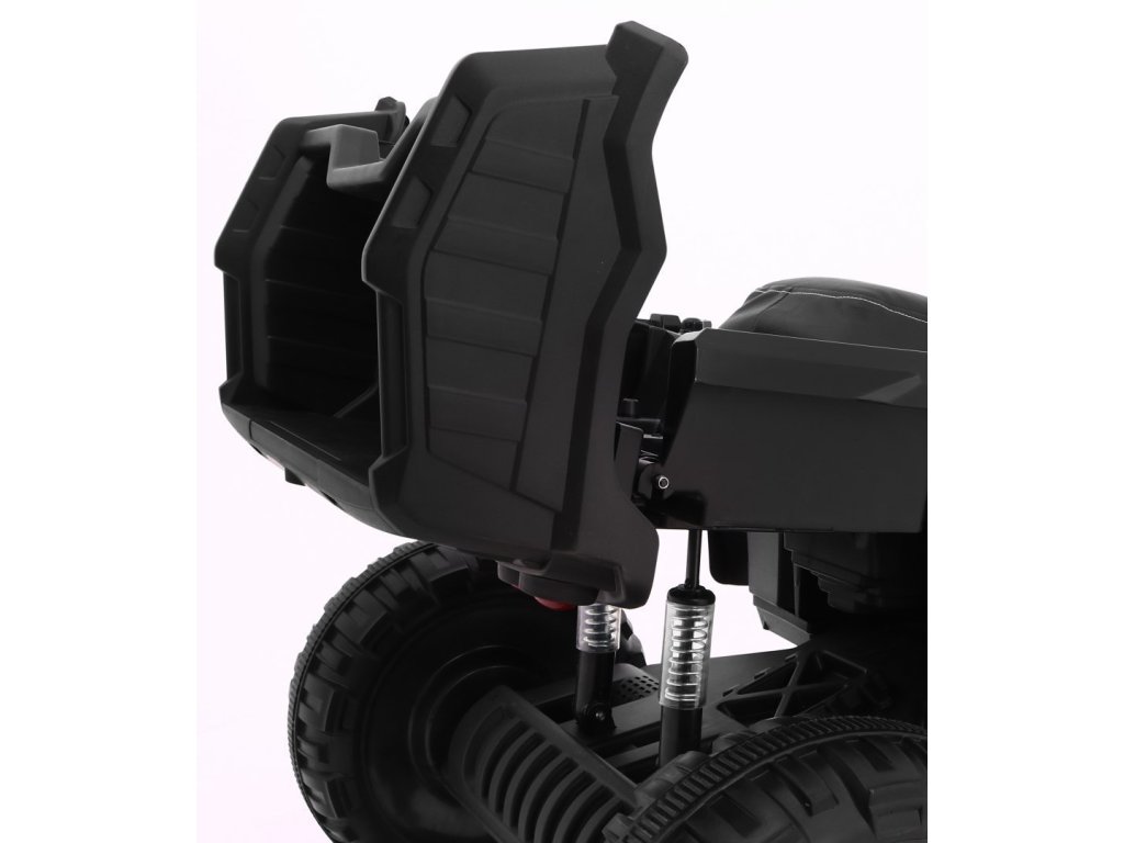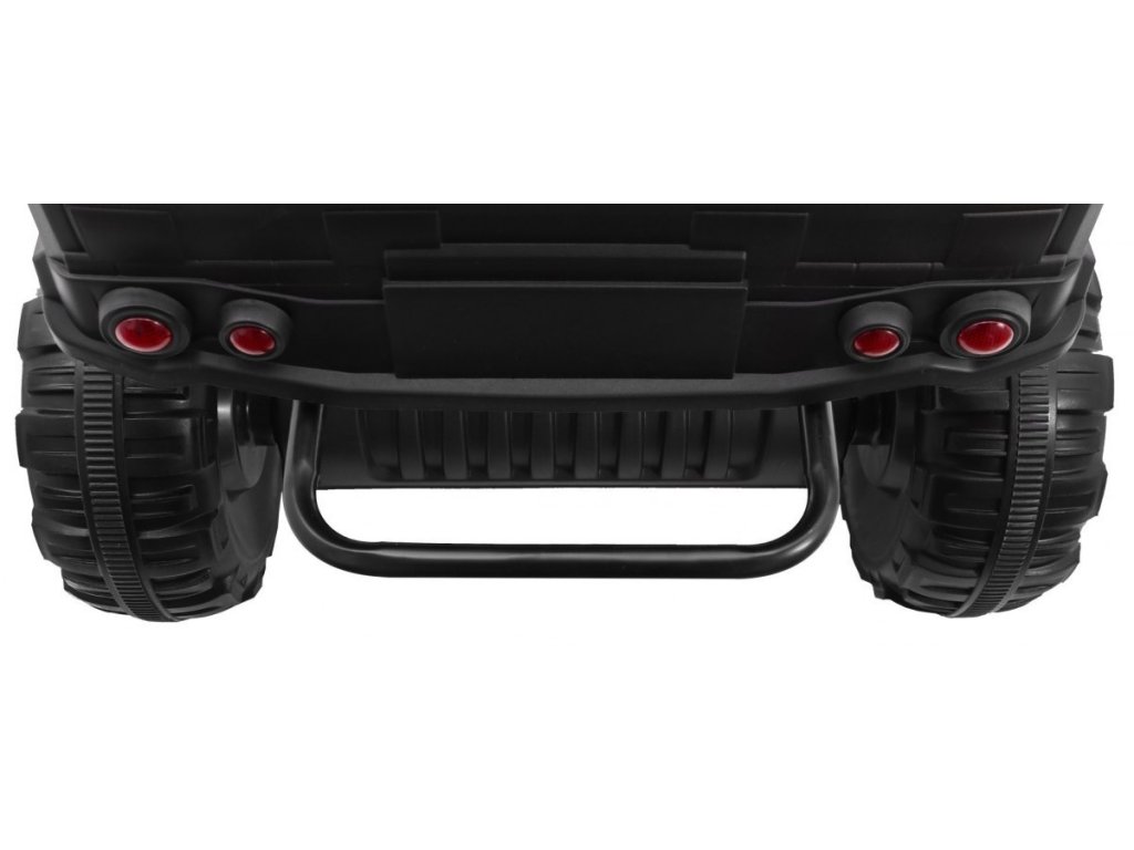 A négykerekű olyan felszereltségével fog lenyűgözni, mint az elülső LED-lámpák és a zenepanel, amely MP3-bemenettel, SD-kártyával, AUX- és USB-csatlakozóval, FM-rádióval, valamint előre lejátszott dallamokkal és kürttel ellátott gombokkal rendelkezik. A quad első és hátsó lengéscsillapítókkal rendelkezik. Indításkor motorhangokat fog hallani.