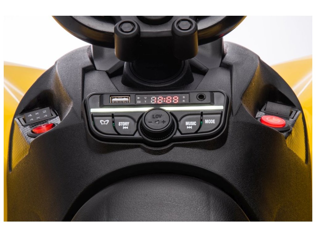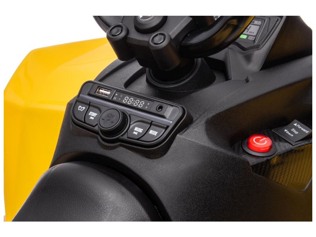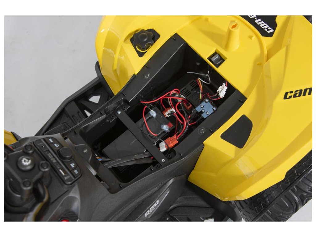 A berendezés tartalmaz egy zenei panelt bemenetekkel USB, MP3, rádió és Bluetooth . A Can-Am négykerekű első és hátsó lámpákkal rendelkezik, minden irányban halad, teherbírása pedig 30 kg .