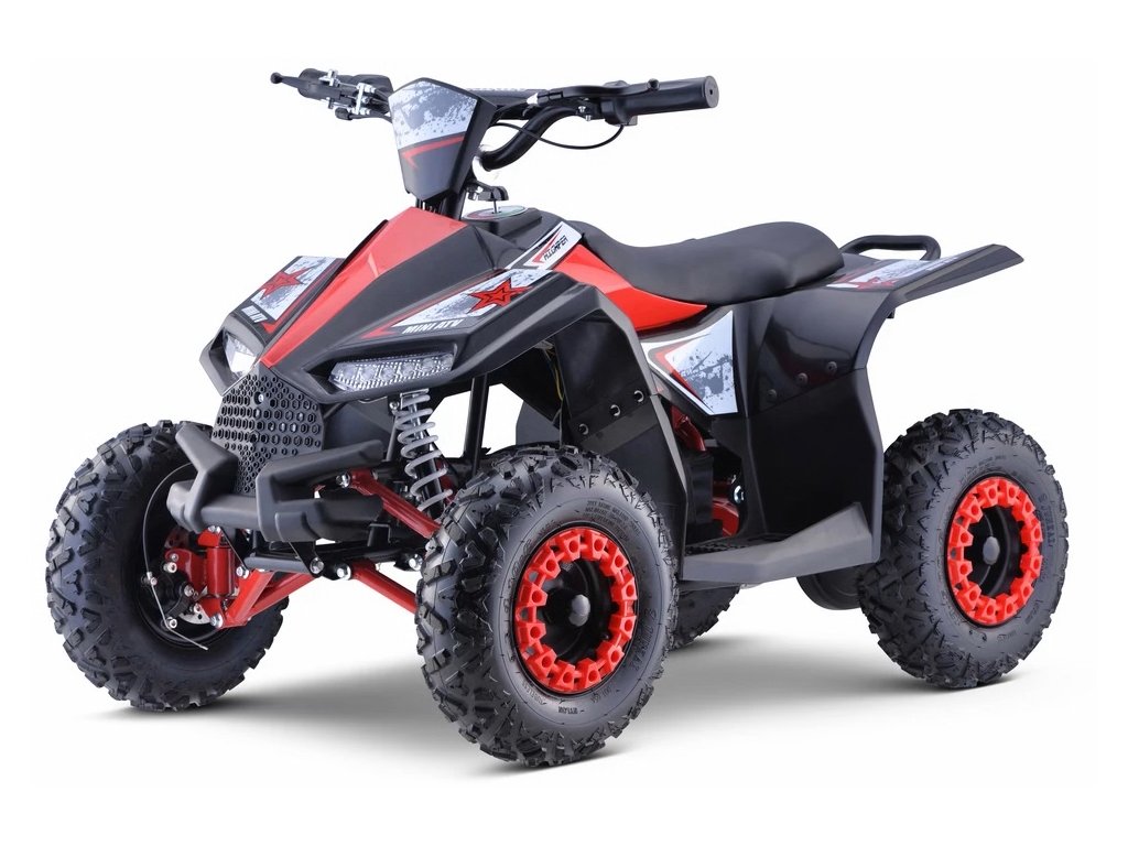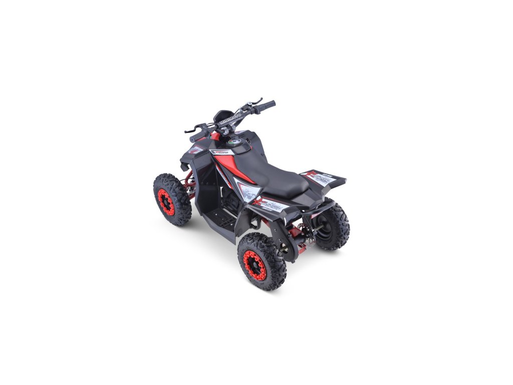 A négykerekű előnye az ökológiai bőrből készült ülés és a 30 cm átmérőjű, 10 cm széles felfújható kerekek. A quad elülső LED lámpákkal és kürttel rendelkezik. A quad első és hátsó tárcsafékekkel rendelkezik. A quad nem vezérelhető a távirányítóval. A quad kulccsal indítható, első és hátsó lengéscsillapítókkal rendelkezik.