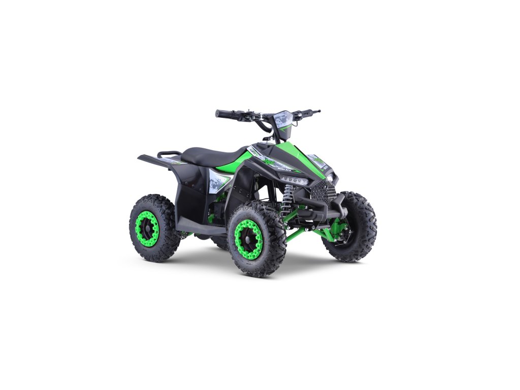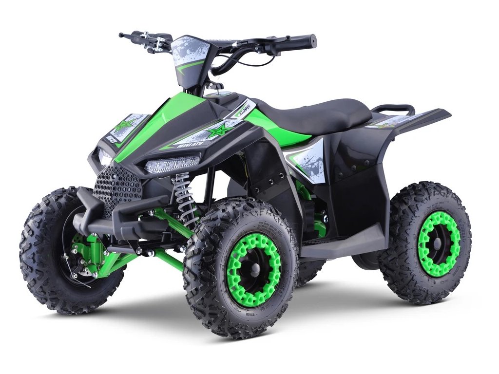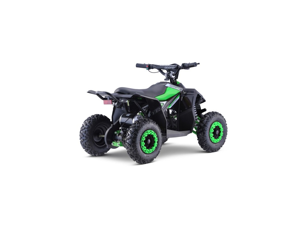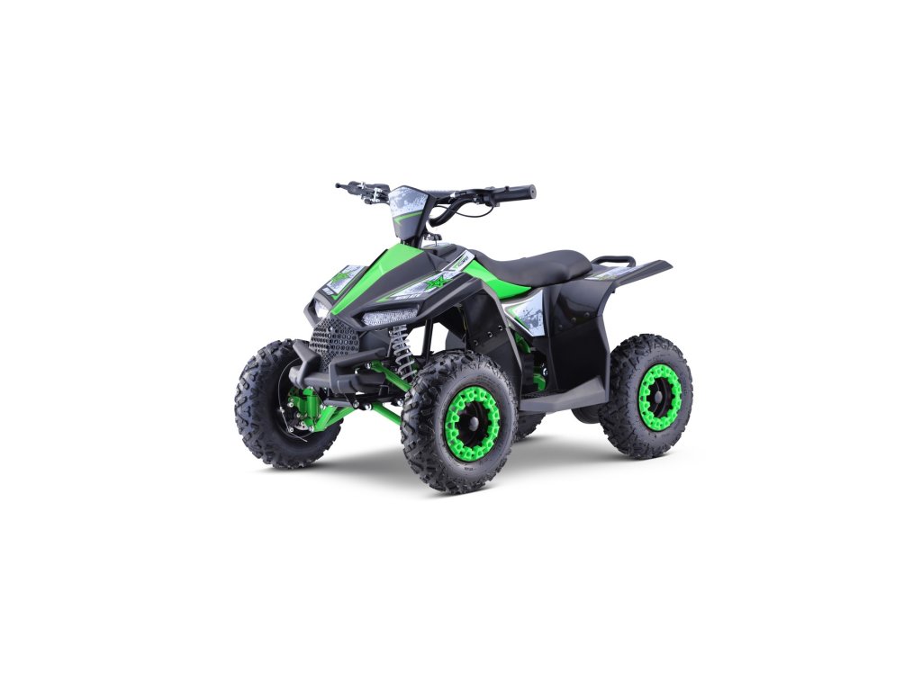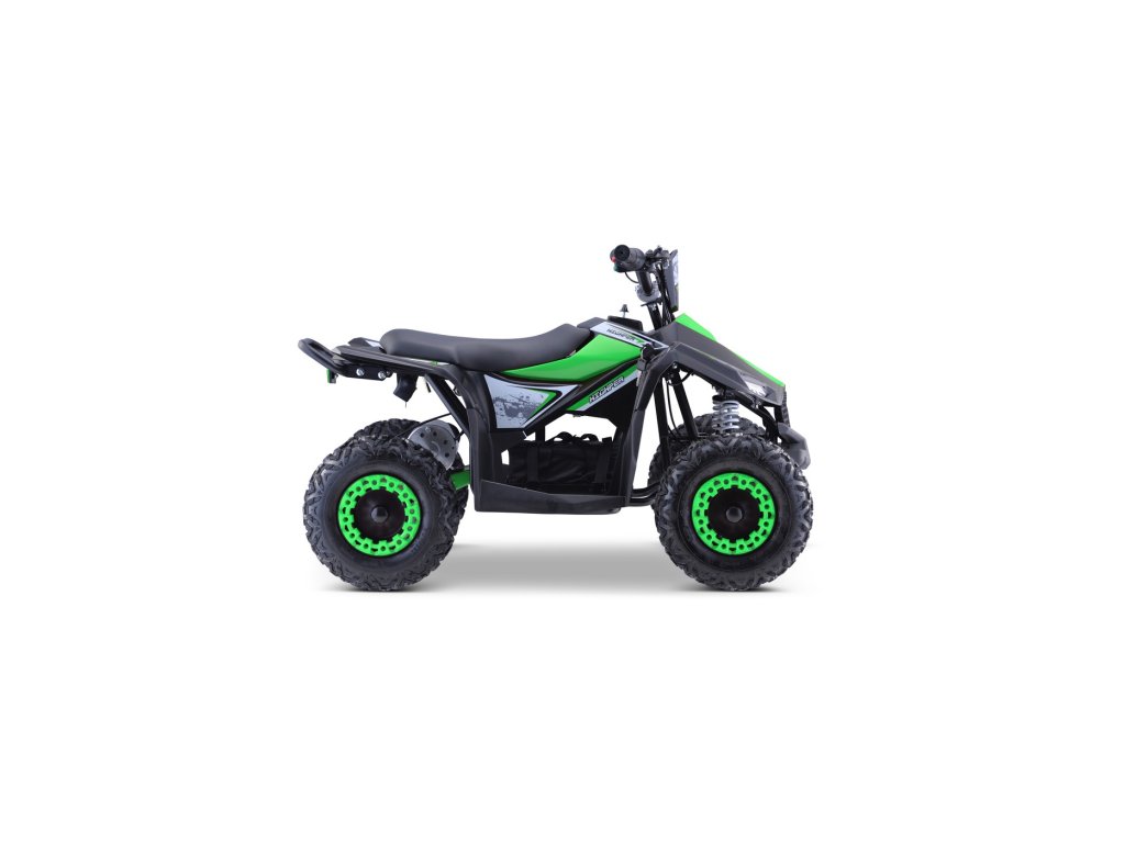 A négykerekű előnye az ökológiai bőrből készült ülés és a 30 cm átmérőjű, 10 cm széles felfújható kerekek. A quad elülső LED lámpákkal és kürttel rendelkezik. A quad első és hátsó tárcsafékekkel rendelkezik. A quad nem vezérelhető a távirányítóval. A quad kulccsal indítható, első és hátsó lengéscsillapítókkal rendelkezik.