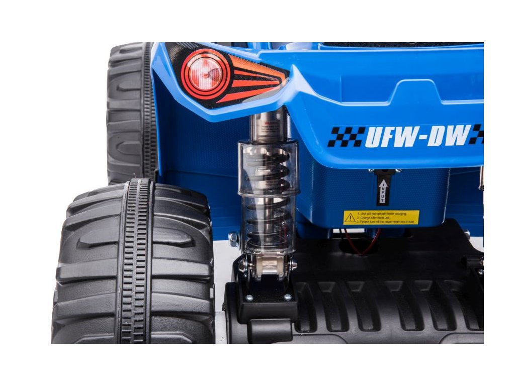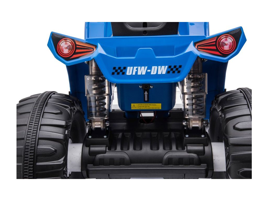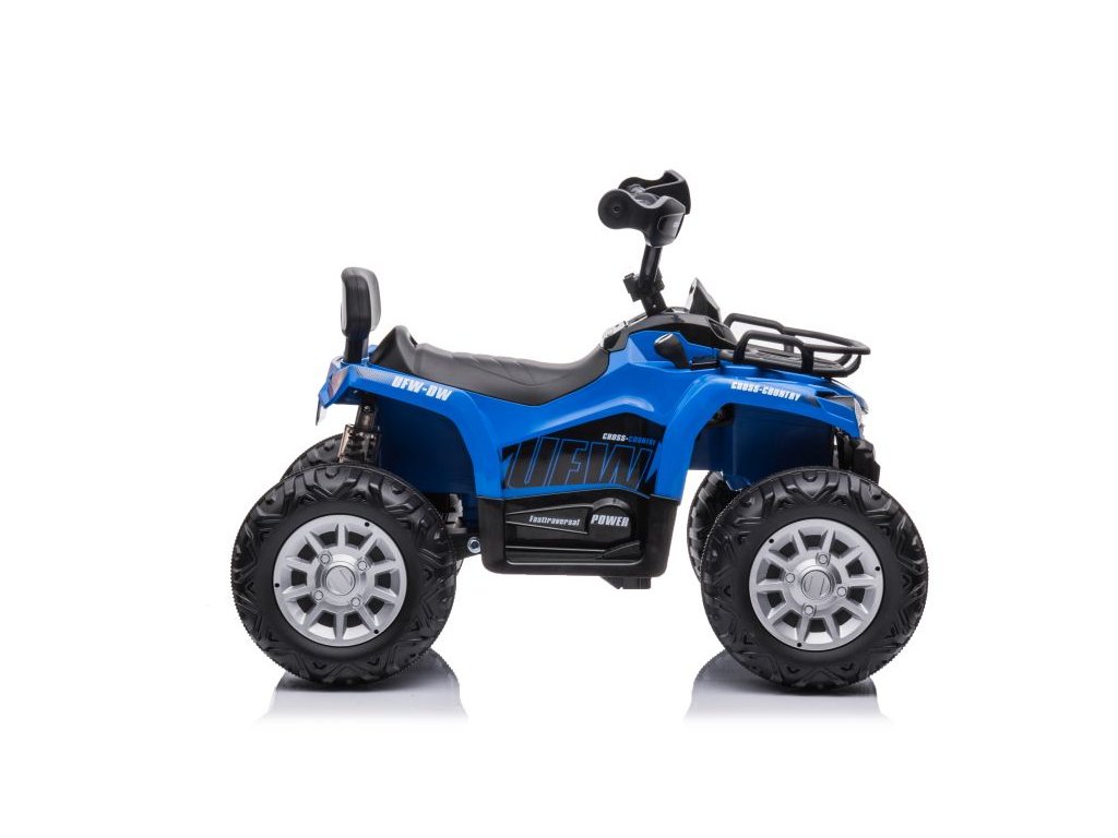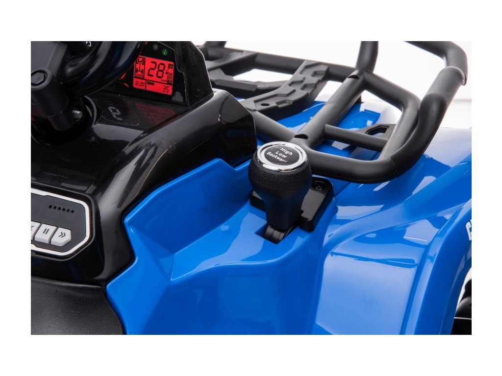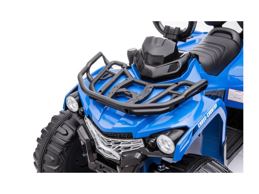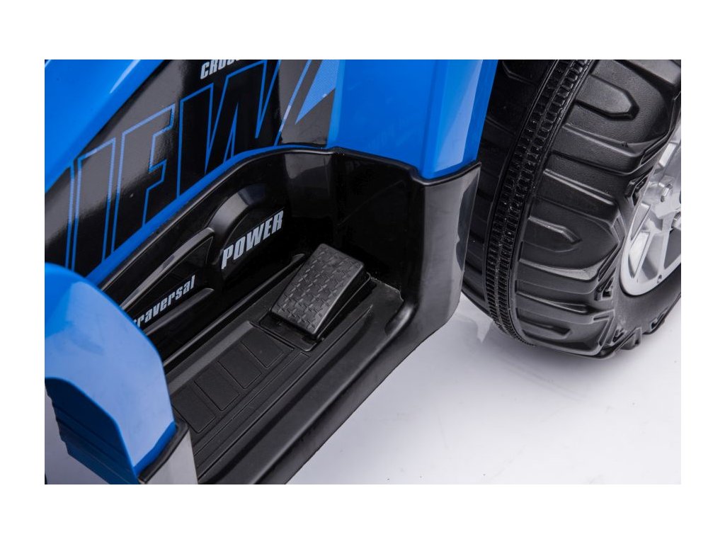 Gyermek elektromos quad erős elektromos motorral, zselés akkumulátorral és gazdag felszereléssel. A belső térben ökológiai bőrből készült ülés, valamint MP3 és USB bemenetekkel ellátott zenepanel eltávolítható. A quad előre felvett dallamokkal rendelkezik, és indításkor motorhangokat ad ki. Elülső LED lámpákkal van felszerelve.