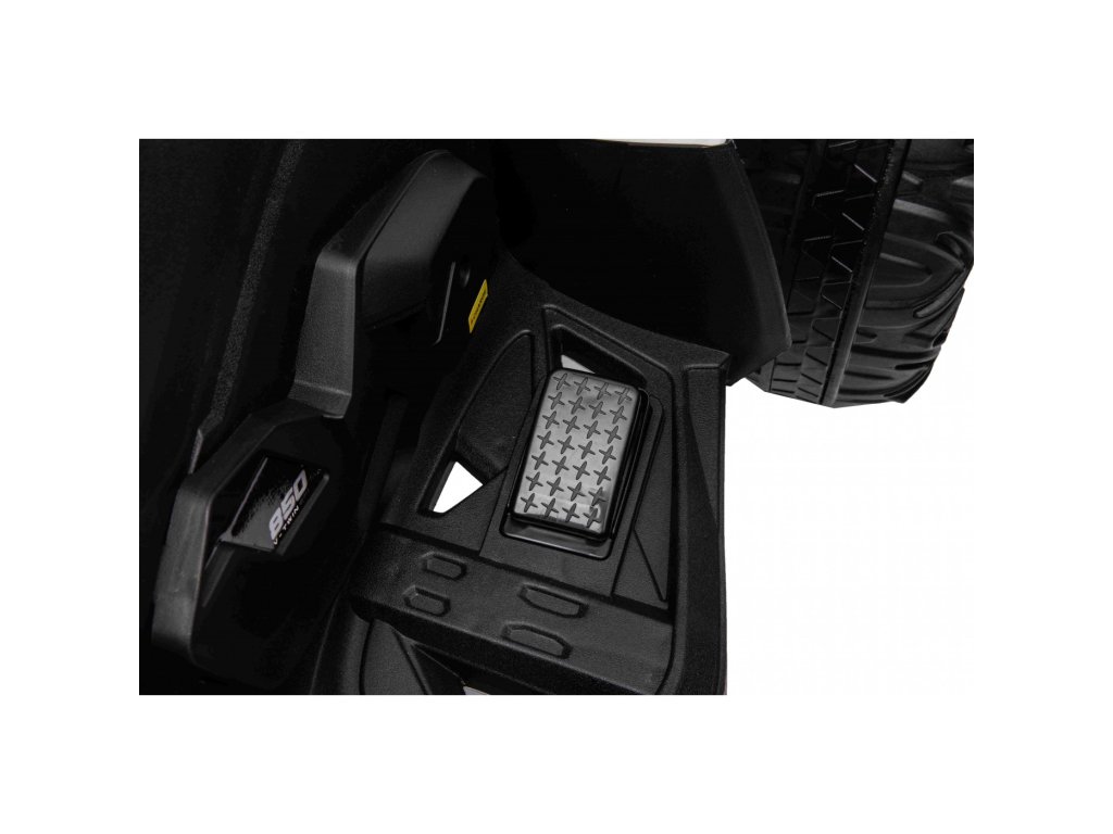 A gyermekek elektromos négykerekűje két 400 W összteljesítményű motorral és széles EVA hab kerekekkel van felszerelve. A quad könnyedén megbirkózik a különféle terepen, burkolatlan felületekkel és dombokkal.