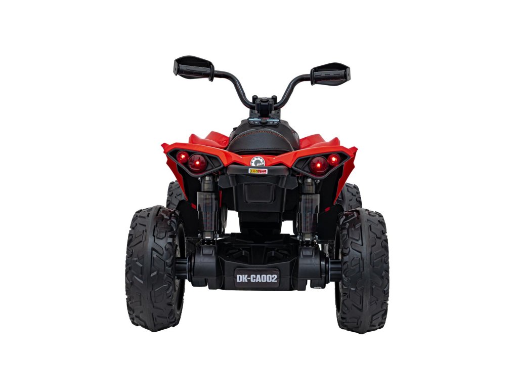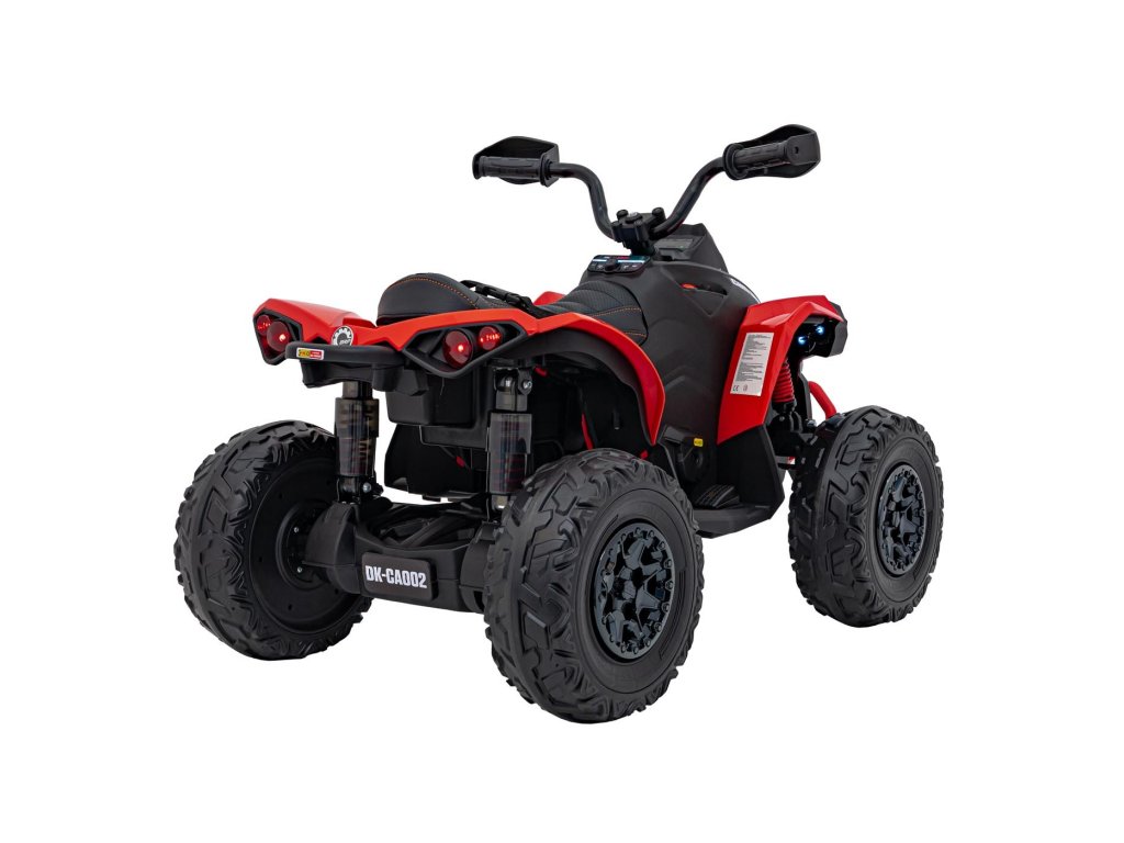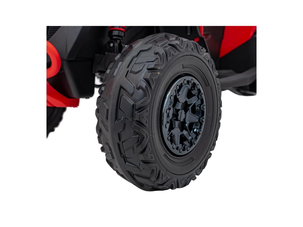 A gyermek elektromos quad két 400 W összteljesítményű motorral és széles EVA hab kerekekkel van felszerelve. A quad könnyedén megbirkózik különféle terepen, burkolatlan felületekkel és dombokkal.