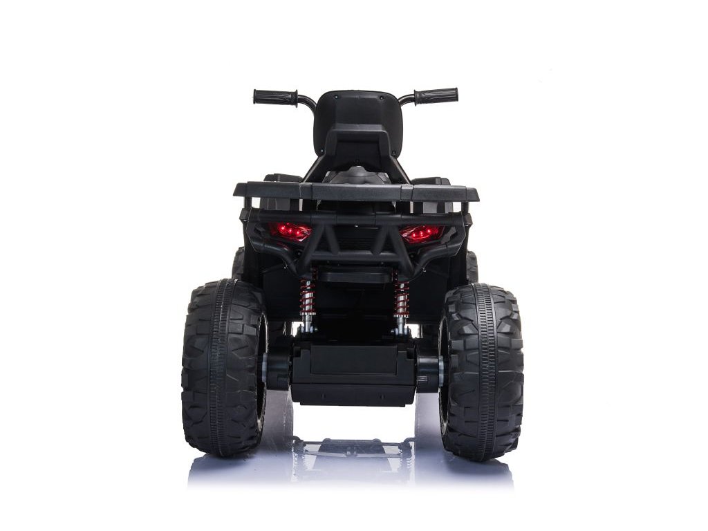 A négykerekű ökológiai bőrből készült üléssel és habszivacs EVA kerekekkel rendelkezik , amelyek kellemesebbé teszik az utazást a gyermek számára. A quad nagy előnye az első és a hátsó lámpák. A biztonságról az automatikus fék gondoskodik, amely a gázpedál elengedésekor aktiválódik.