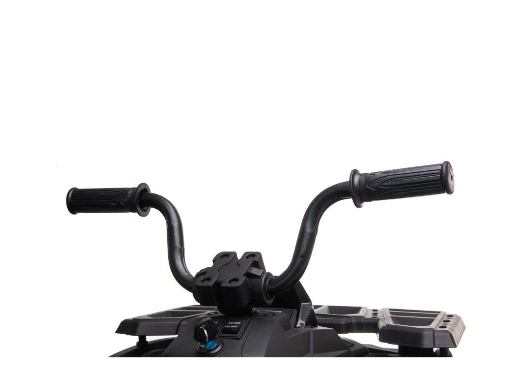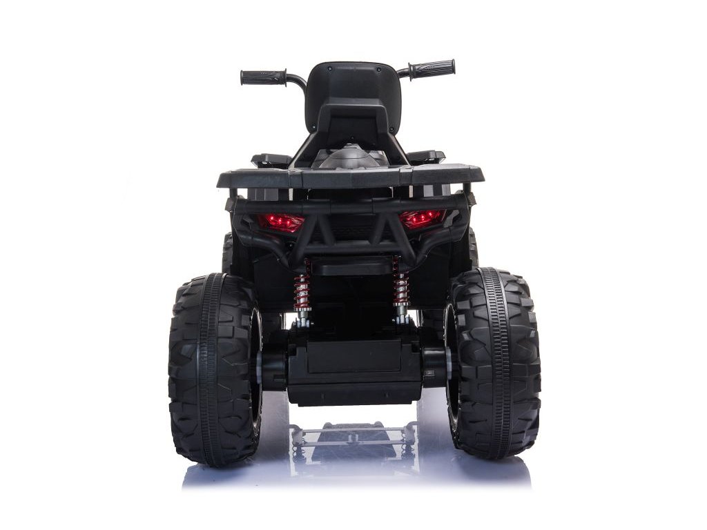 A négykerekű ökológiai bőrből készült üléssel és habszivacs EVA kerekekkel rendelkezik , amelyek kellemesebbé teszik az utazást a gyermek számára. A quad nagy előnye az első és a hátsó lámpák. A biztonságról az automatikus fék gondoskodik, amely a gázpedál elengedésekor aktiválódik.