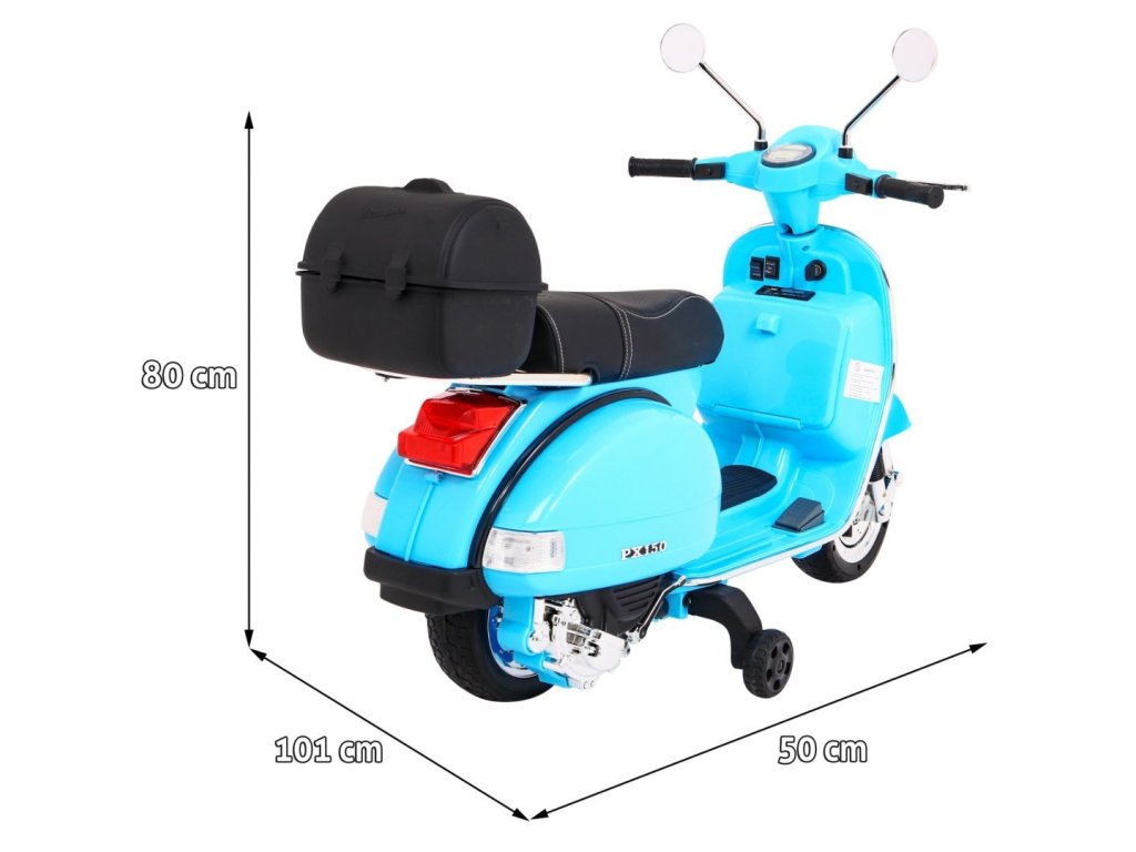Ki ne ismerné a Vespa márkájú robogót ? Még a gyermeke is vezetheti ezt a legendás robogót ennek a licencelt modellnek köszönhetően. A robogó kiváló minőségű, puha ökológiai bőrrel borított üléssel és puha EVA kerekekkel rendelkezik. Mindezeken felül gyönyörű első és hátsó LED-es lámpákkal rendelkezik, és MP3 fájlok lejátszására is képes, így gyermeke vezetés közben hallgathatja kedvenc dalát, és egyben fejlesztheti vezetési képességeit.