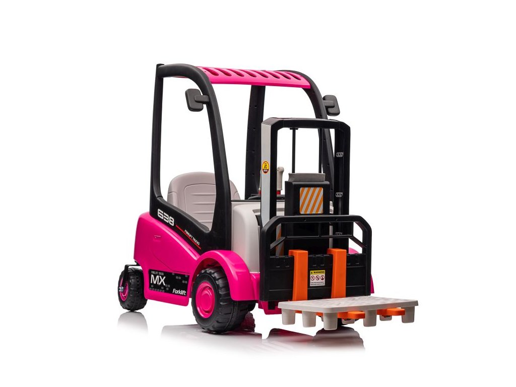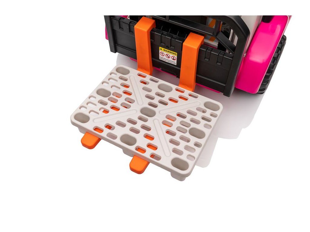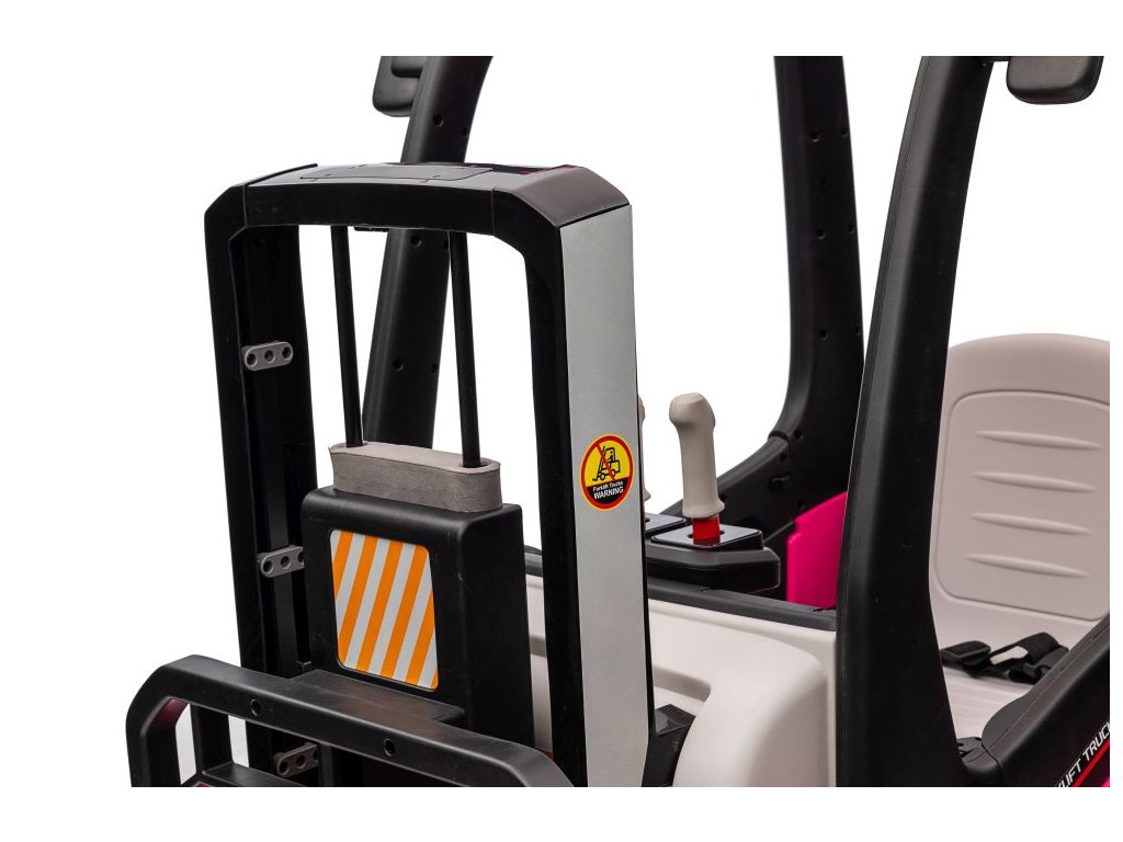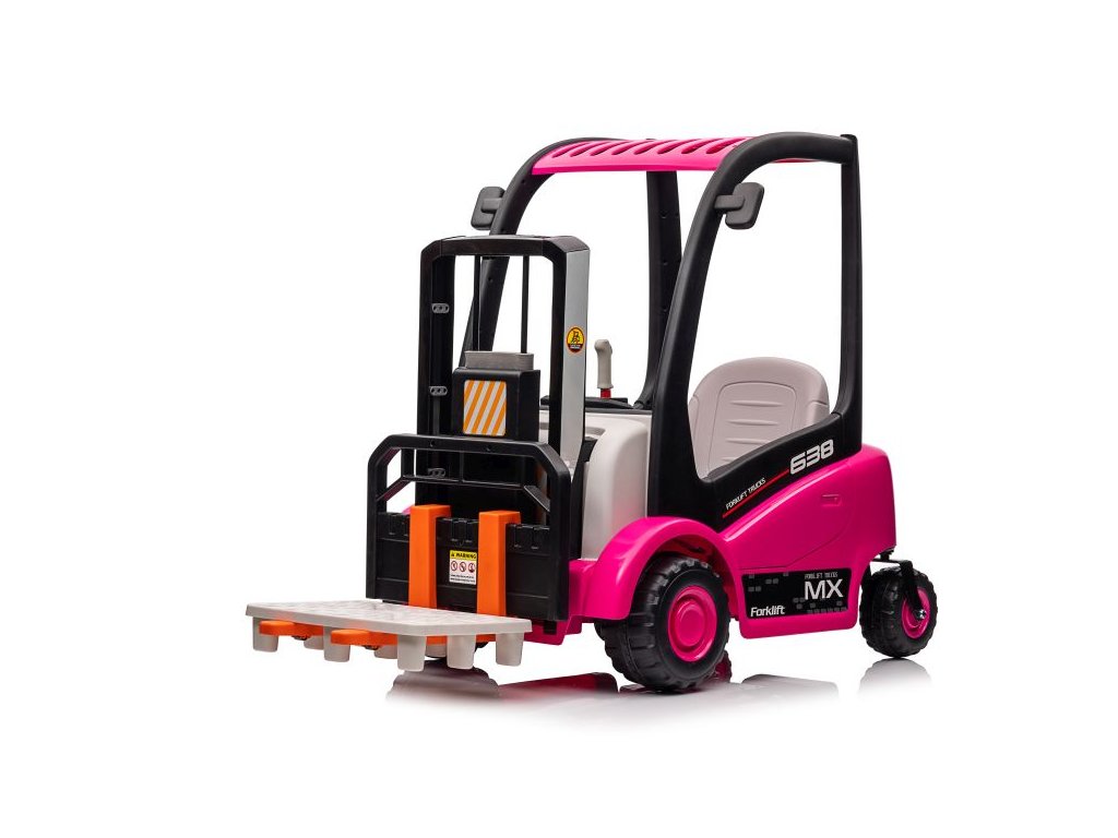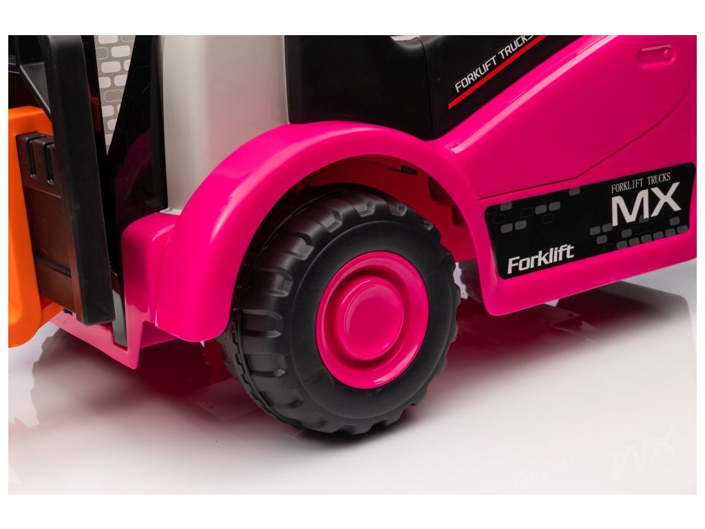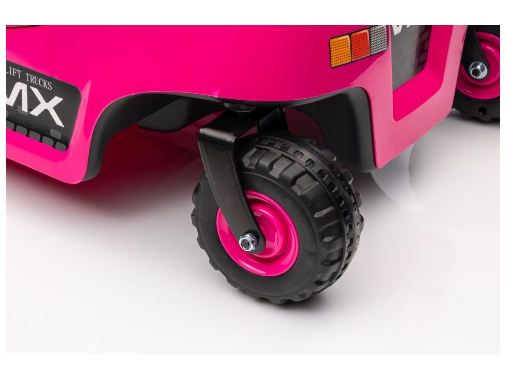 A gyermek elektromos targonca két 90W összteljesítményű motorral és széles kerekekkel van felszerelve.