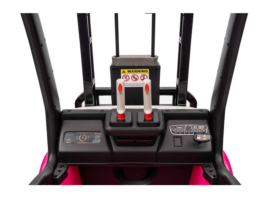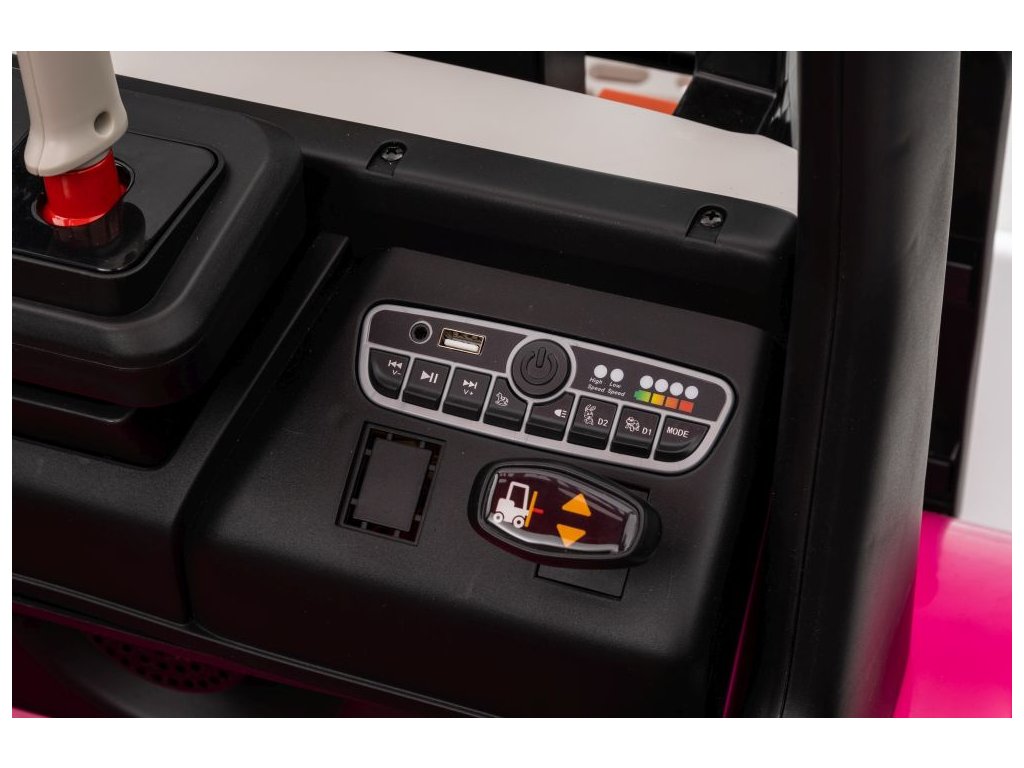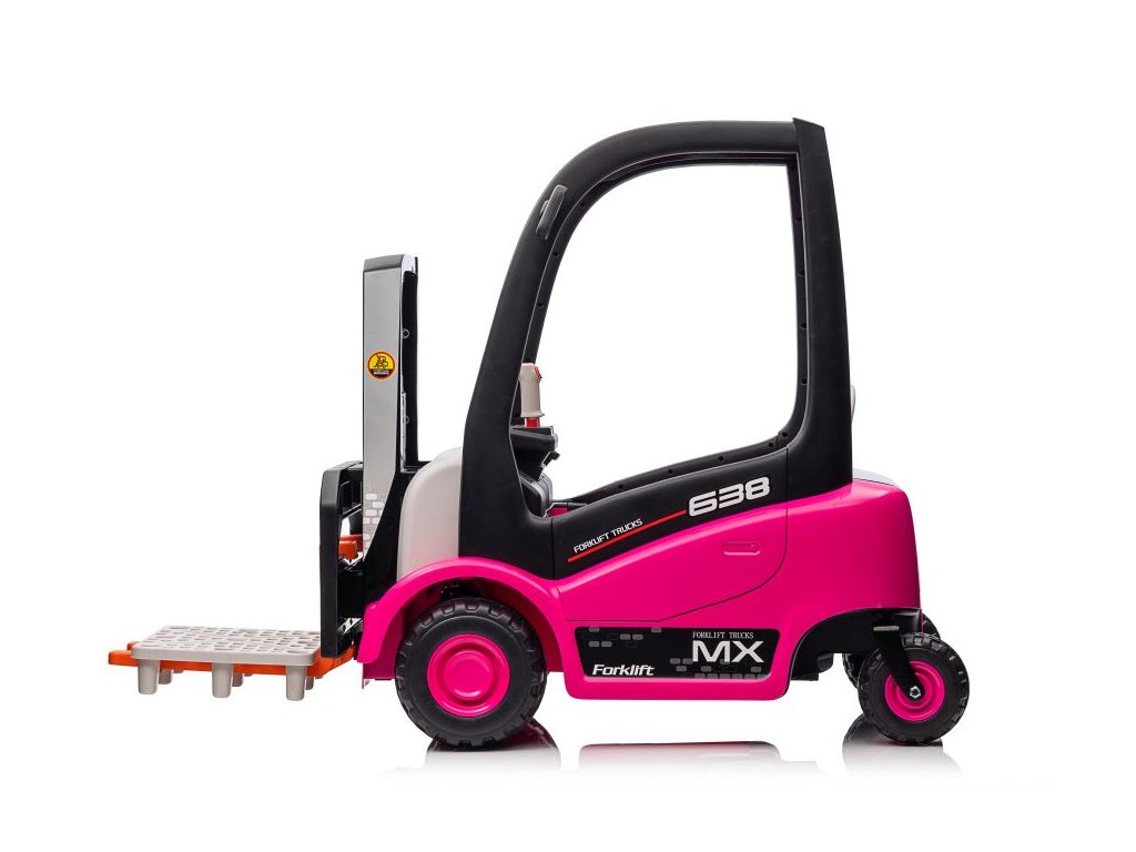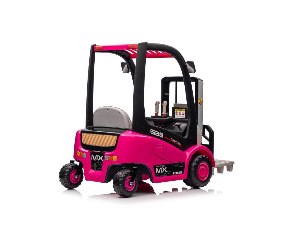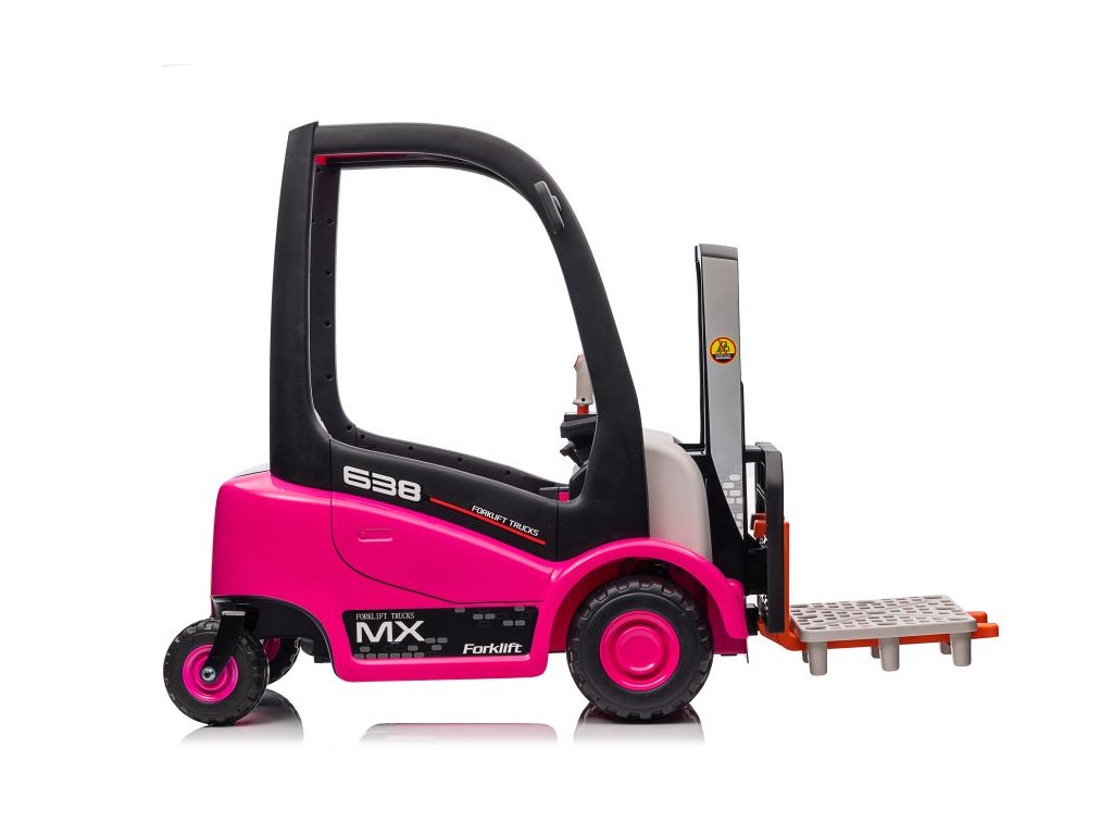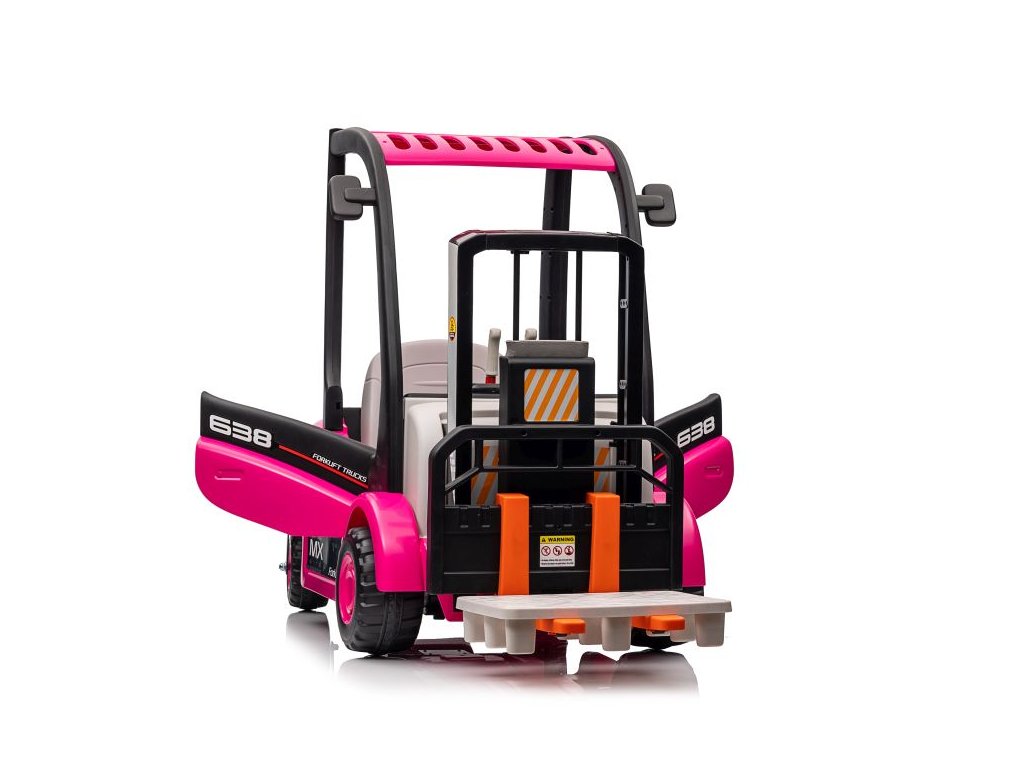 A gyermek elektromos targonca két 90W összteljesítményű motorral és széles kerekekkel van felszerelve.