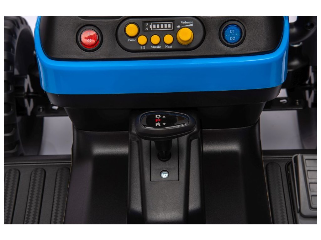 Elektromos traktor nem hiányozhat egyetlen gyermekgarázsból sem. A jármű 12V-os 7Ah akkumulátorral működik. A kocsi maximális terhelhetősége 30 kg . Utazás közben a gyermeket biztosan lenyűgözi a Bluetooth- os zenepanel .