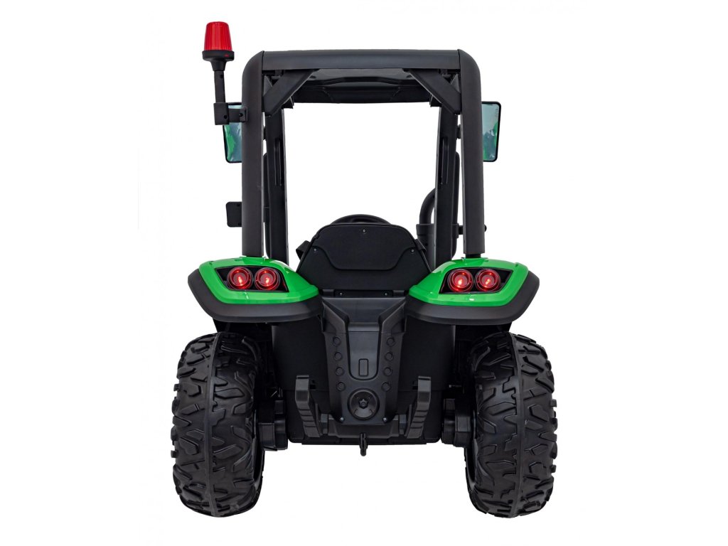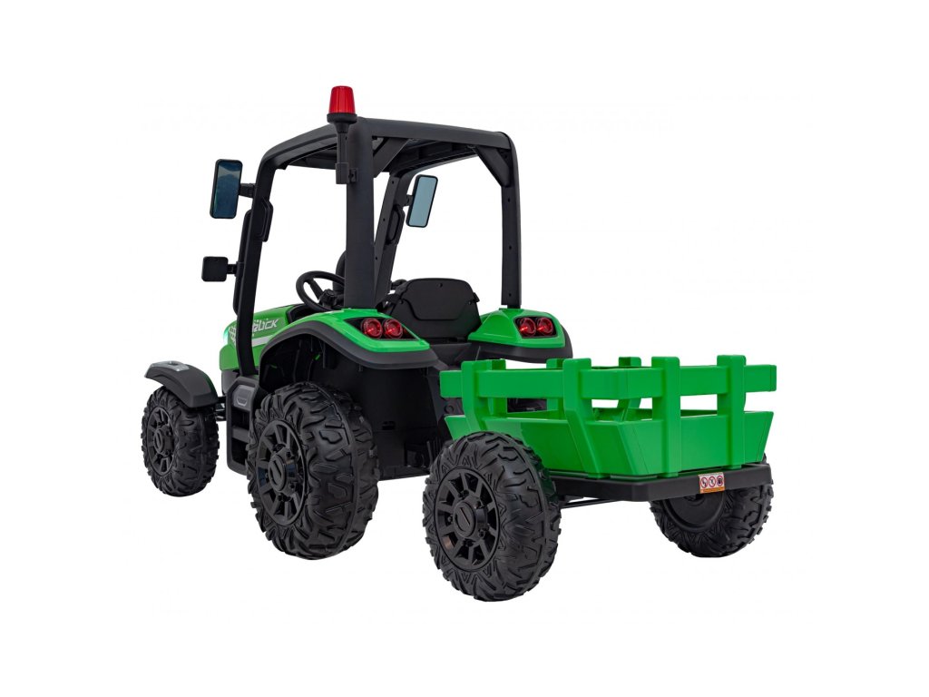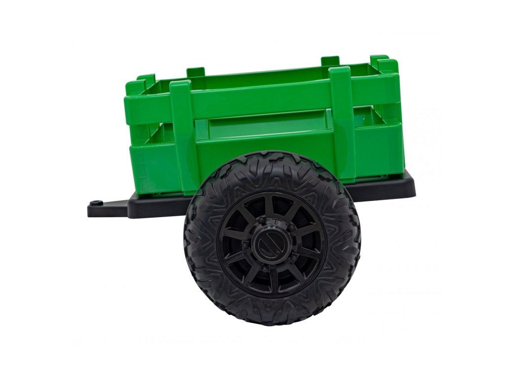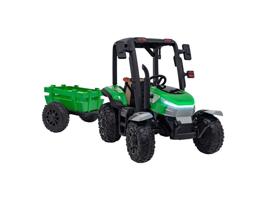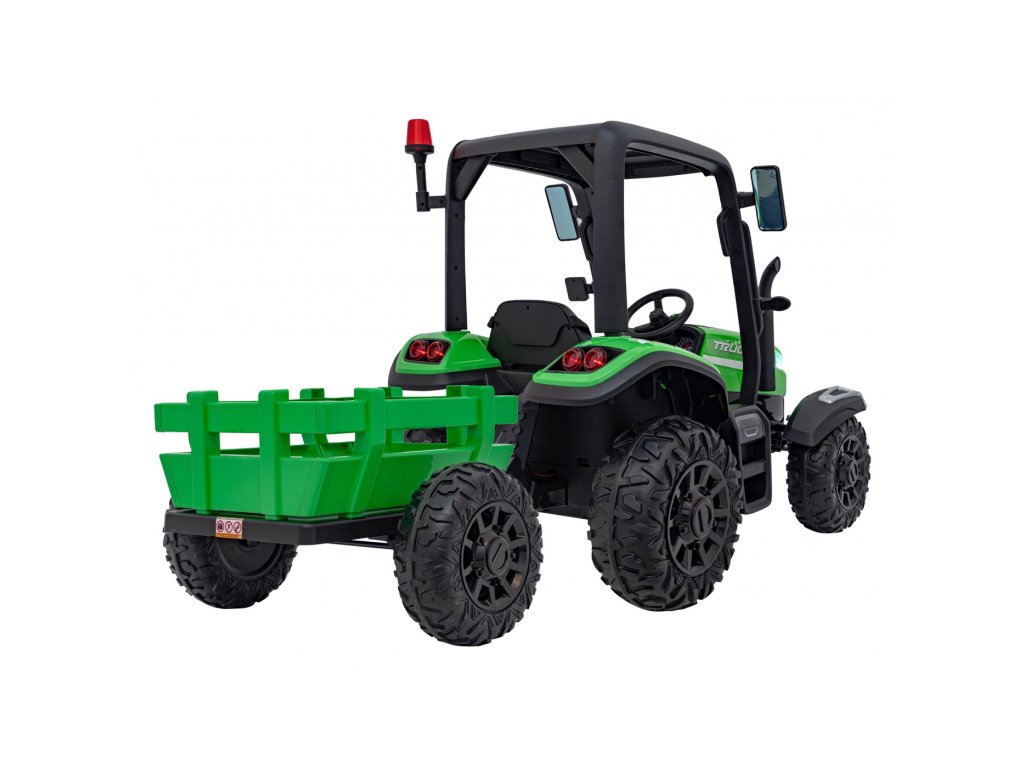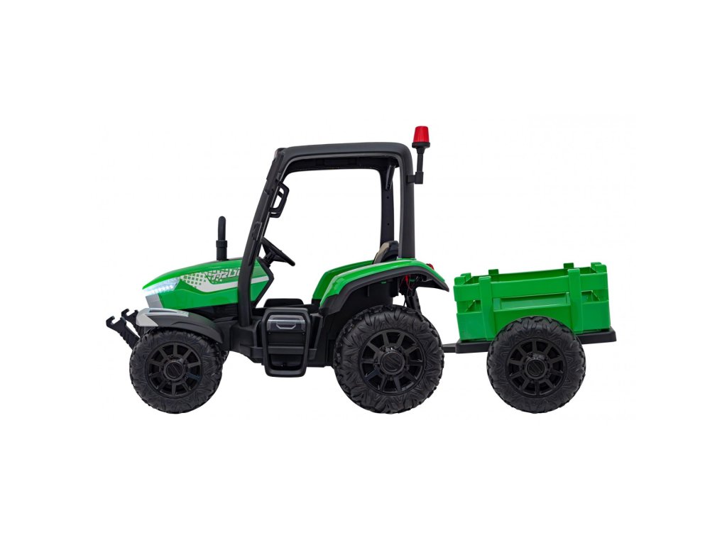A pótkocsis elektromos gyerektraktor két nagyon erős 200W-os motorral és egy 24V 7Ah kapacitású akkumulátorral rendelkezik. A traktor elülső és hátsó LED lámpákkal, valamint USB, MP3 és Bluetooth bemenettel rendelkező zenepanellel rendelkezik. A traktor maximális teherbírása 30 kg .