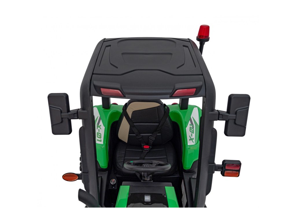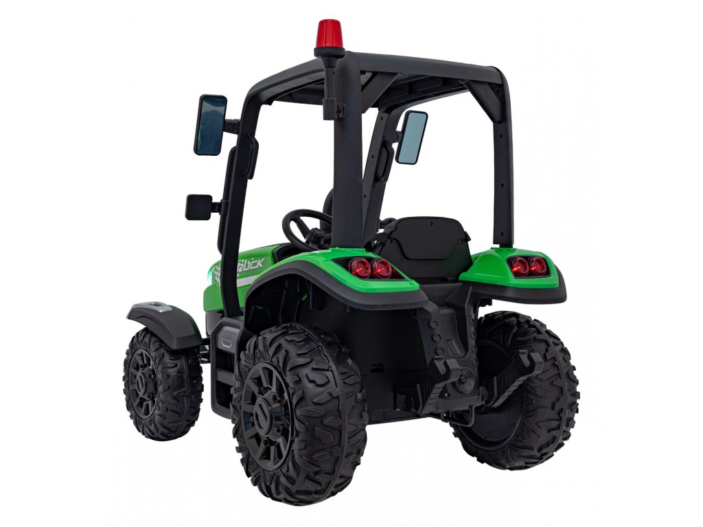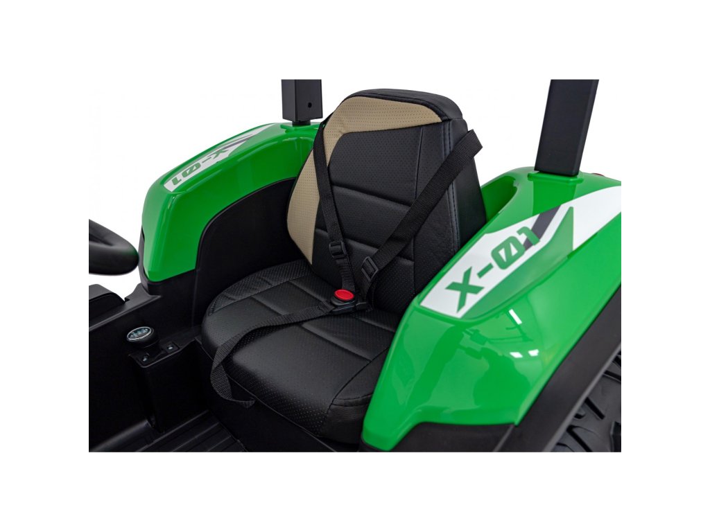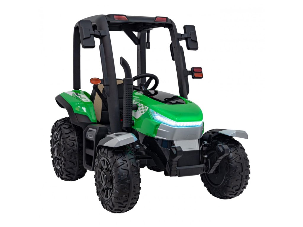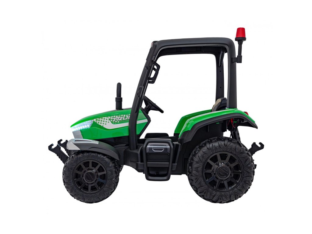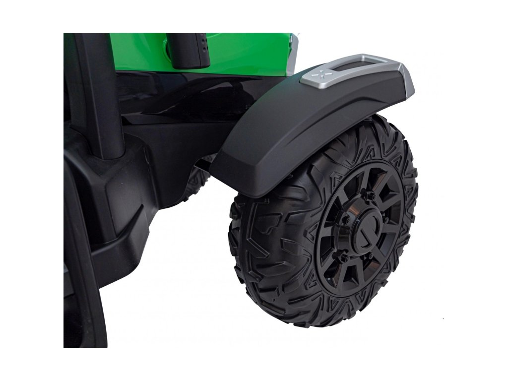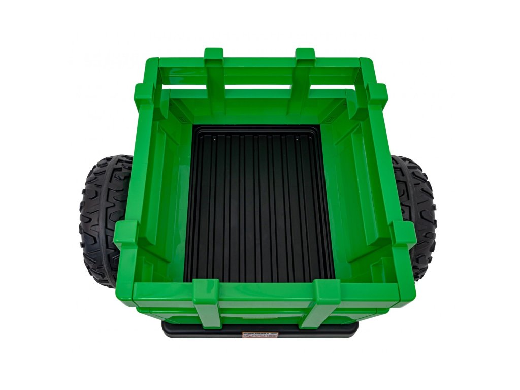 A pótkocsis elektromos gyerektraktor két nagyon erős 200W-os motorral és egy 24V 7Ah kapacitású akkumulátorral rendelkezik. A traktor elülső és hátsó LED lámpákkal, valamint USB, MP3 és Bluetooth bemenettel rendelkező zenepanellel rendelkezik. A traktor maximális teherbírása 30 kg .