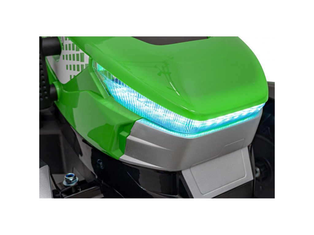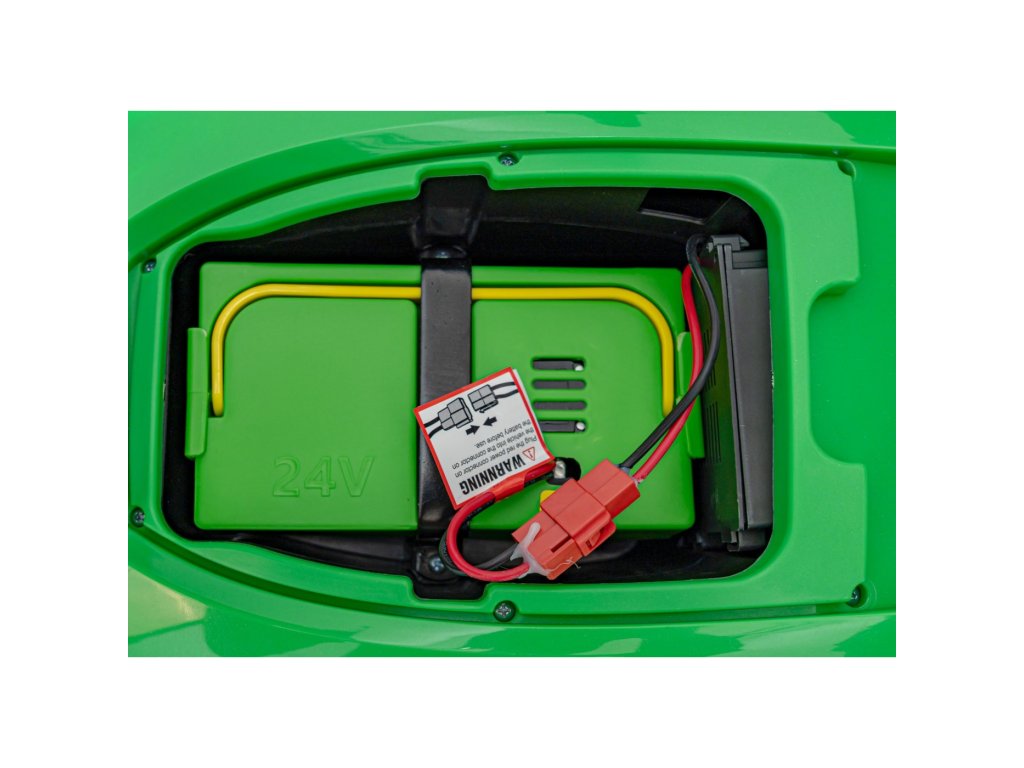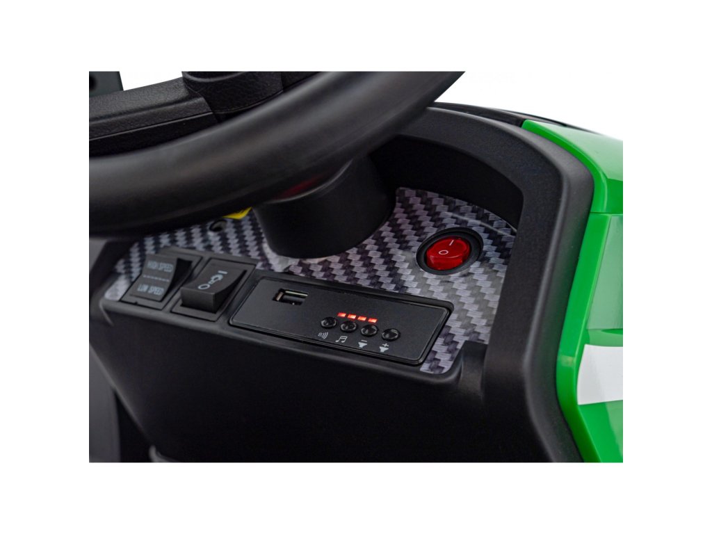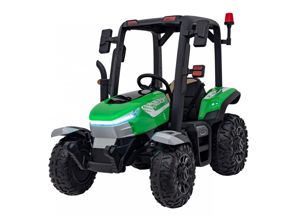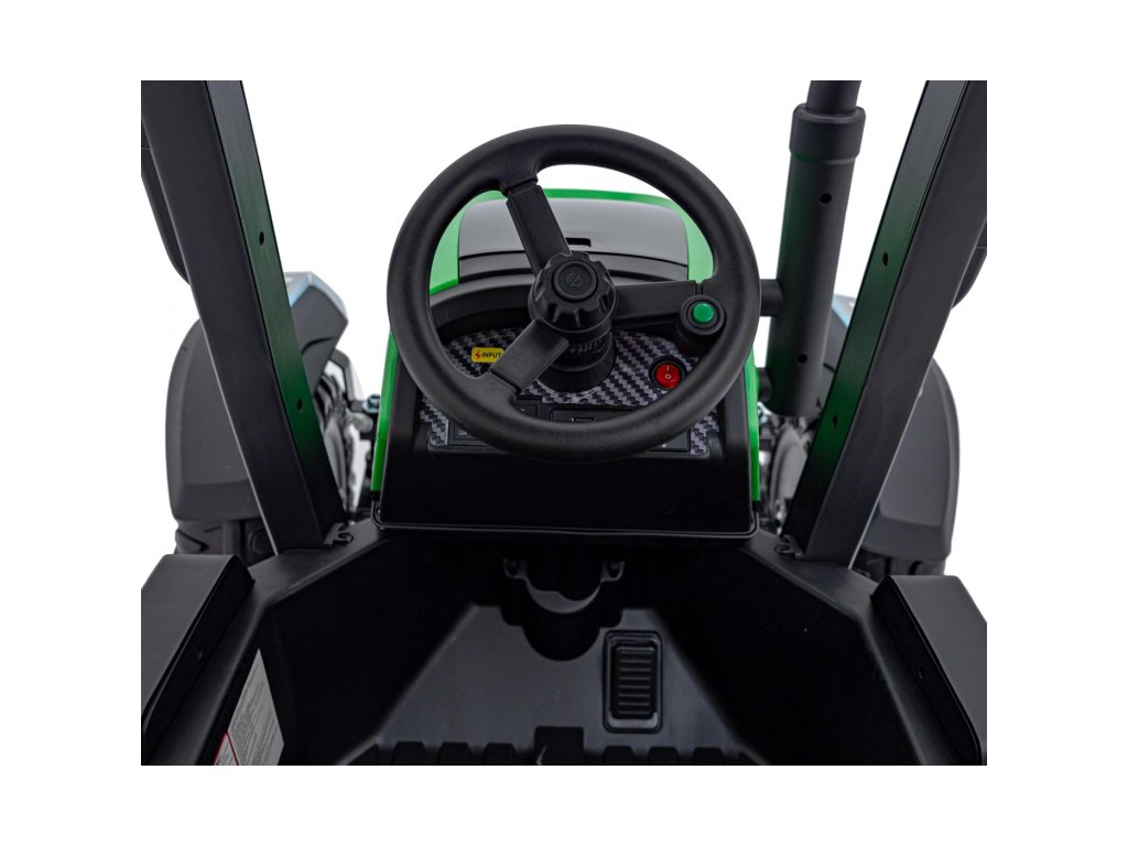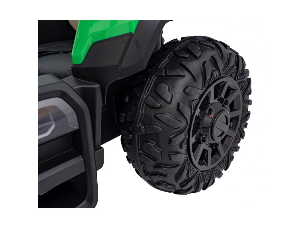 A pótkocsis elektromos gyerektraktor két nagyon erős 200W-os motorral és egy 24V 7Ah kapacitású akkumulátorral rendelkezik. A traktor elülső és hátsó LED lámpákkal, valamint USB, MP3 és Bluetooth bemenettel rendelkező zenepanellel rendelkezik. A traktor maximális teherbírása 30 kg .