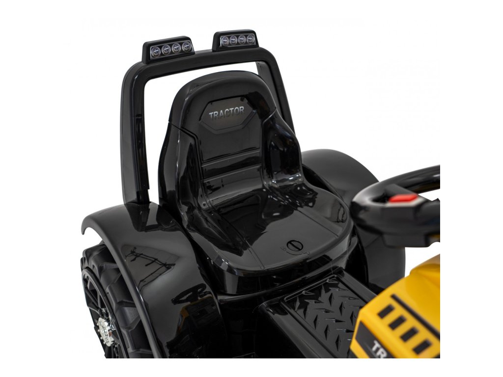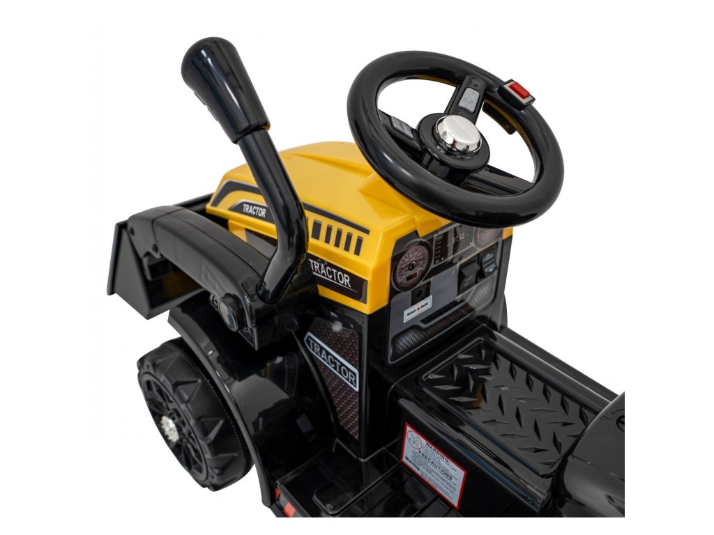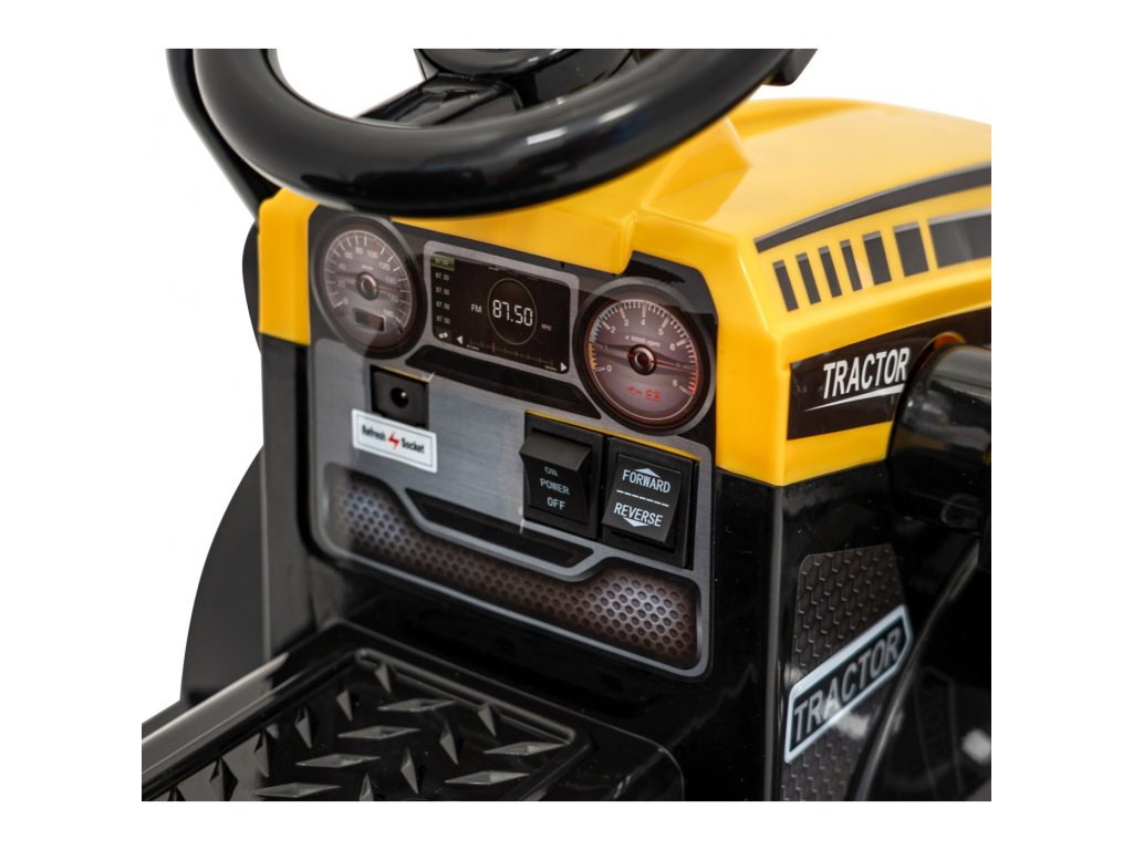 Kialakításának és masszív kerekeinek köszönhetően a gyermek elektromos traktor nem csak aszfaltozott terepen alkalmazkodik. A traktor 25 W-os motorral rendelkezik. Az irányítás nagyon egyszerű, csak nyomja meg a gázpedált, és már indulhat is a terepen. Amikor felengedi a lábát a gázpedálról, a traktor automatikusan leáll. Az integrált zene biztosan kellemesebbé teszi az utazást.