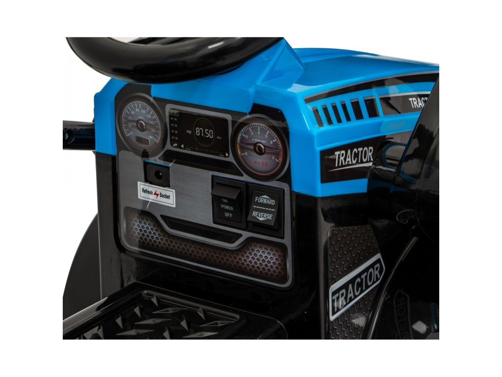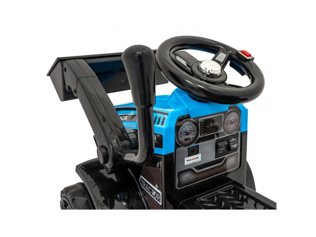Kialakításának és masszív kerekeinek köszönhetően a gyermek elektromos traktor nem csak aszfaltozott terepen alkalmazkodik. A traktor 25 W-os motorral rendelkezik. Az irányítás nagyon egyszerű, csak nyomja meg a gázpedált, és már indulhat is a terepen. Amikor felengedi a lábát a gázpedálról, a traktor automatikusan leáll. Az integrált zene biztosan kellemesebbé teszi az utazást.
